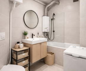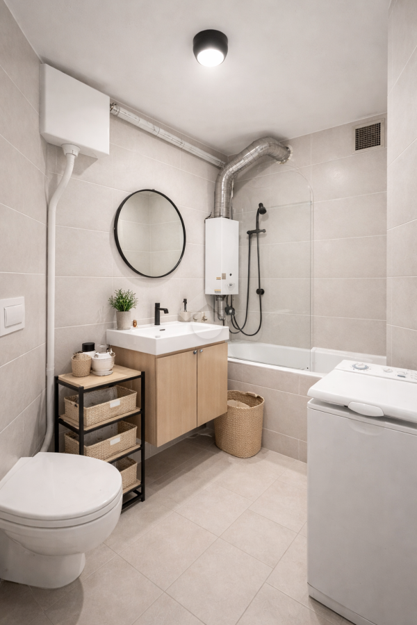 Woda: piecyk gazowy w łazience i terma w kuchni