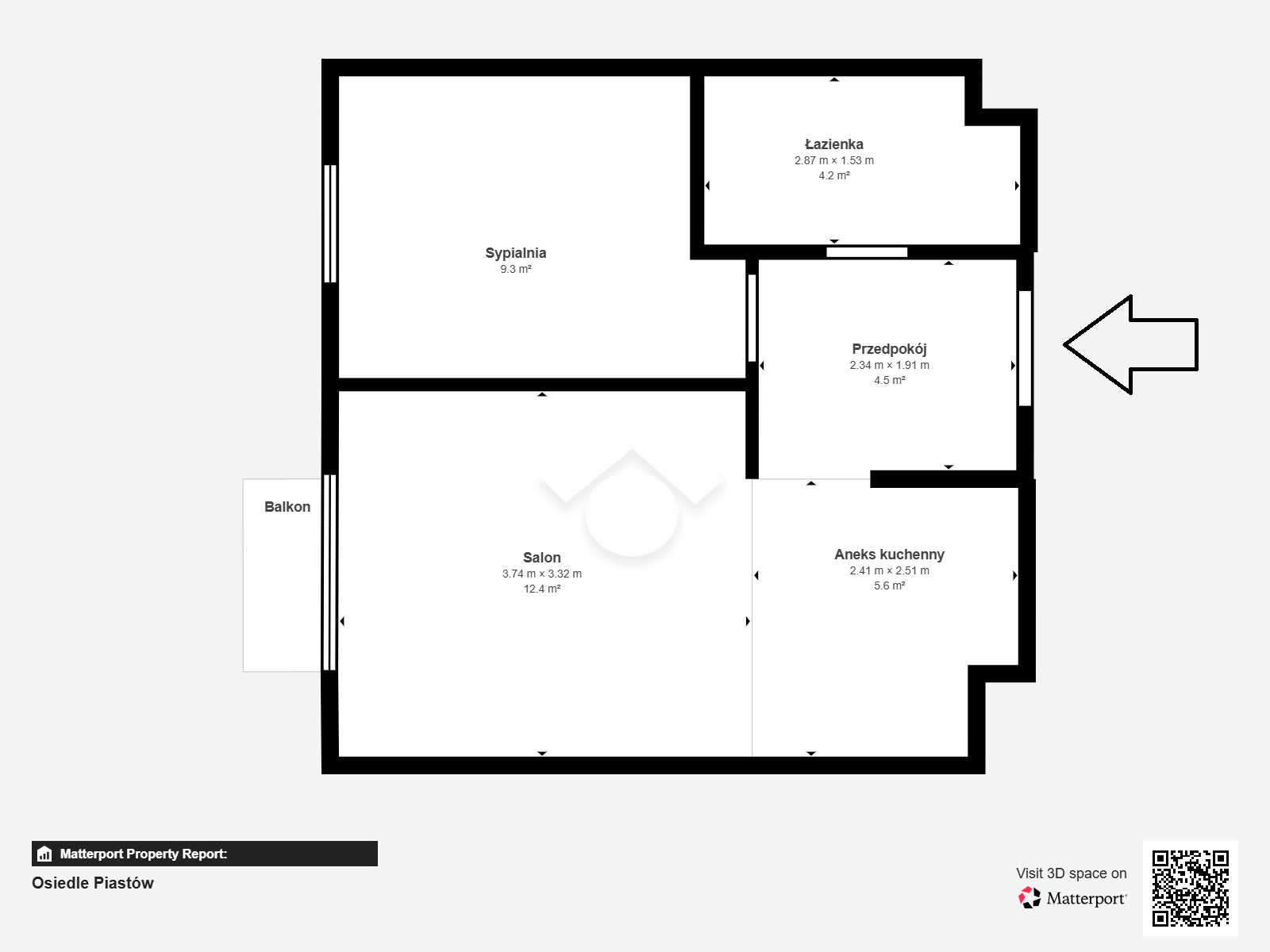 Do mieszkania przynależy komórka lokatorska (2,08 m²).