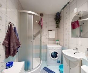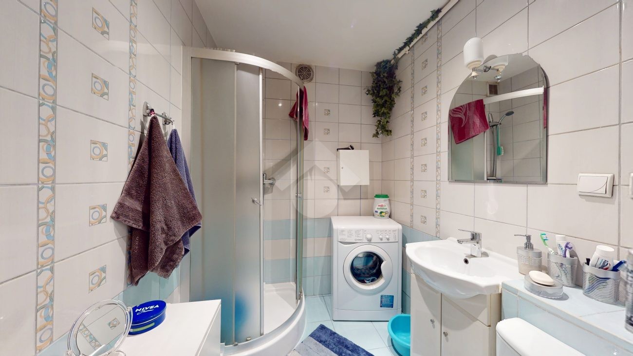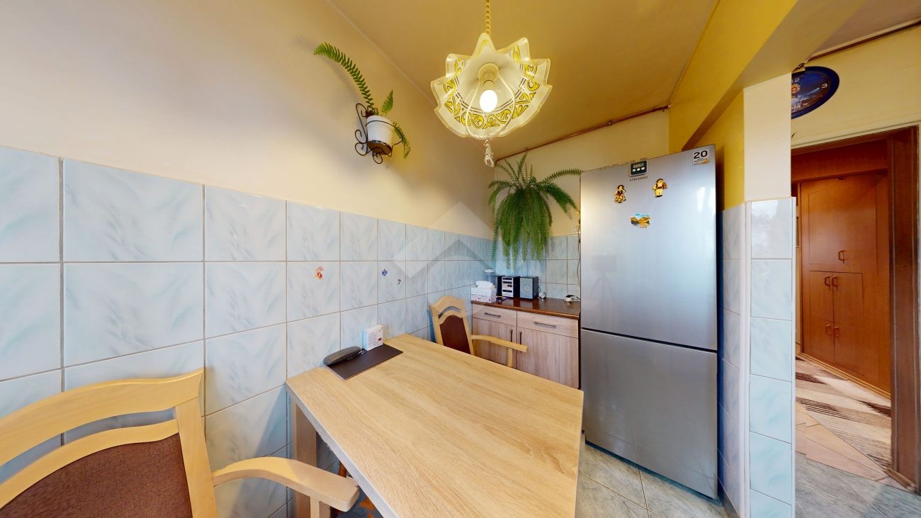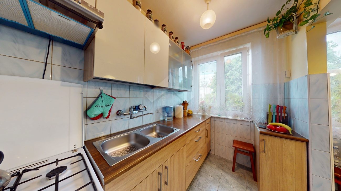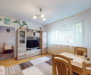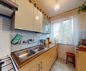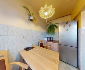 Do remontu. Na przedpokoju, w kuchni oraz w łazience płytki, w salonie oraz w jednej z sypialni panele, w drugiej sypialni wykładzina. Na ścianach w przedpokoju boazeria, w bardzo dobrym stanie. W pierwszej sypialni na jednej ze ścian jest tapeta. Okna plastikowe. Instalacja elektryczna częściowo wymieniona, dorobione zostało kilka gniazdek. Ogrzewanie oraz ciepła woda z sieci miejskiej. Gaz tylko w kuchence.