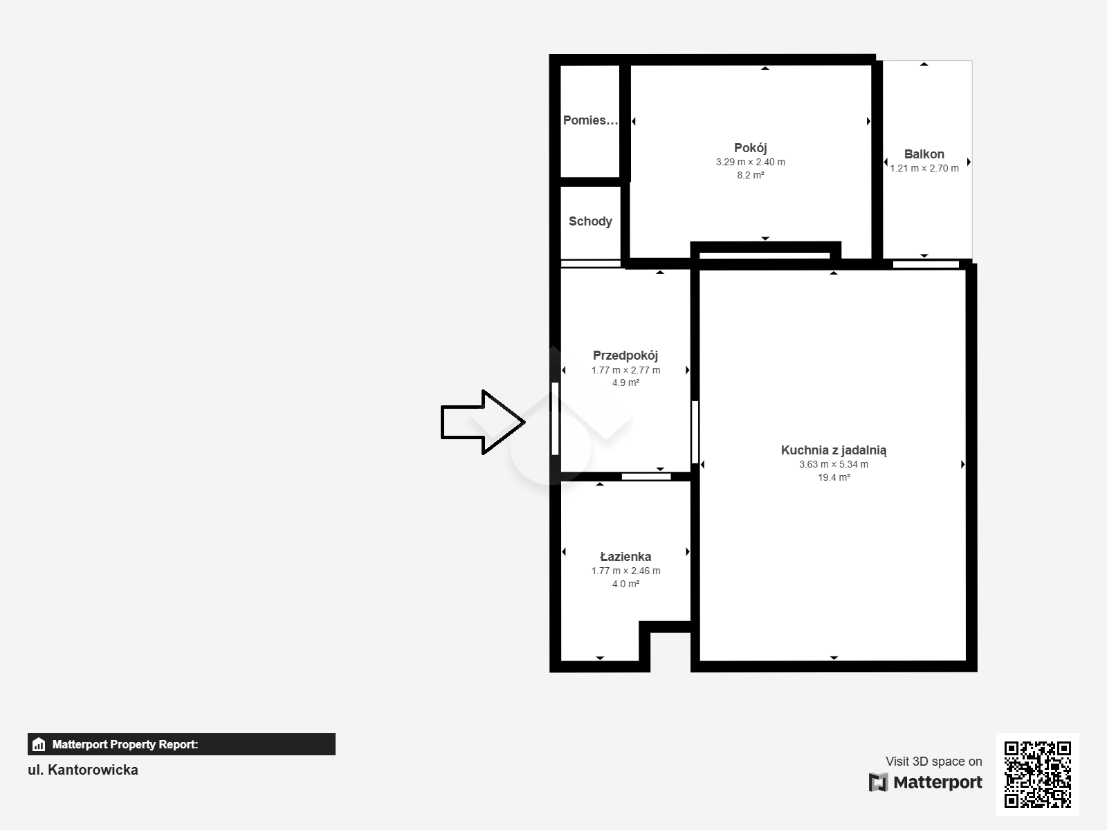 Do mieszkania przynależy również piwnica (1,58 m2) oraz balkon.