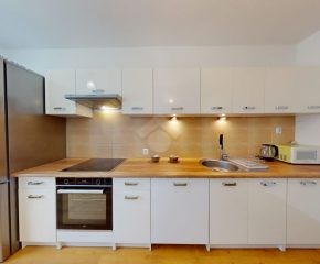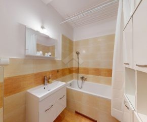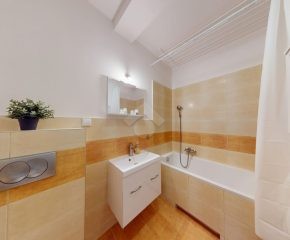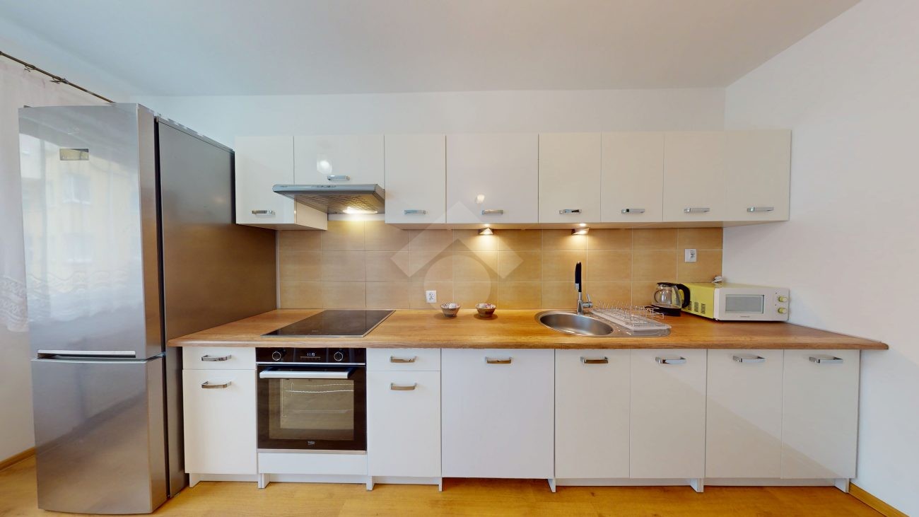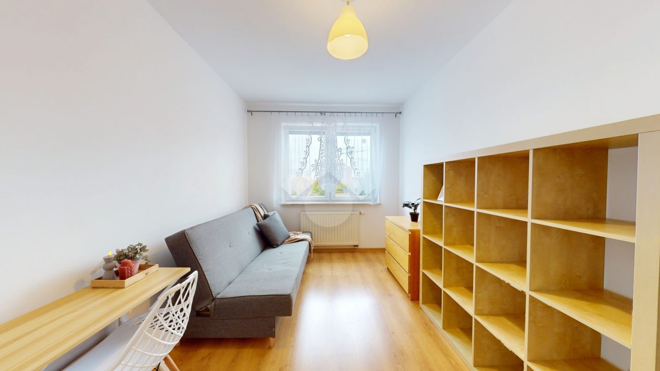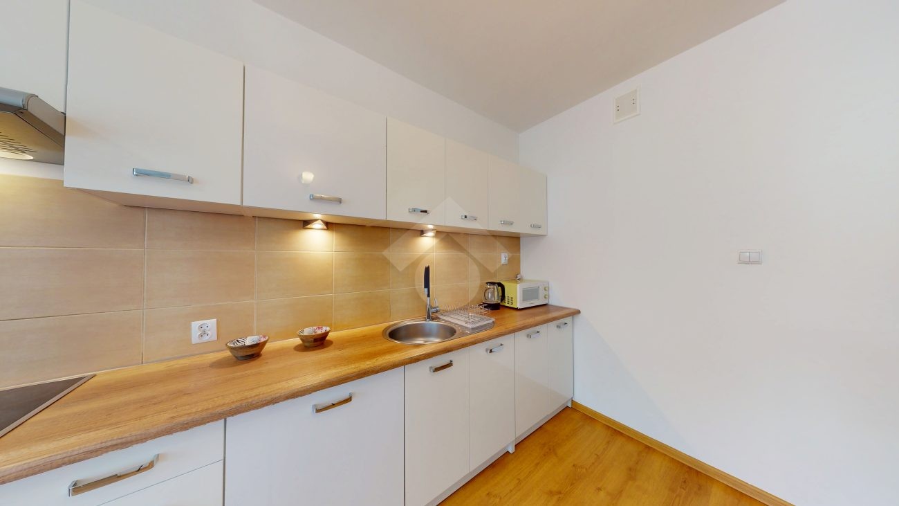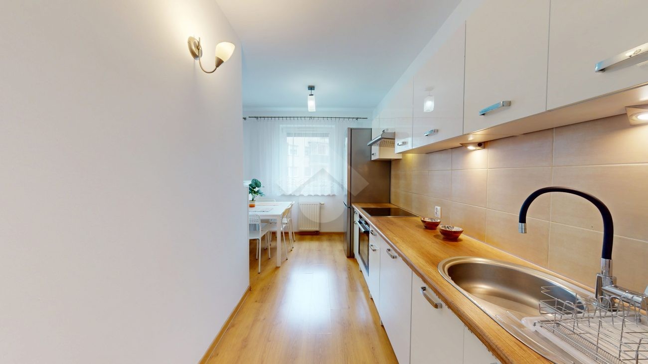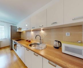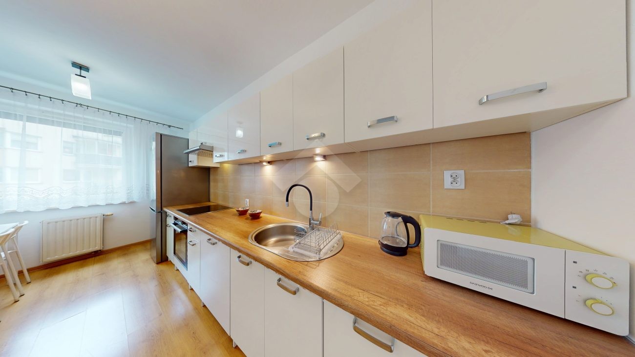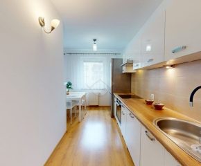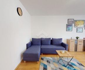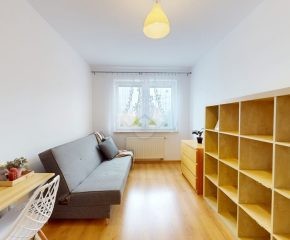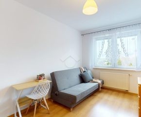 Mieszkanie w bardzo dobrym stanie technicznym, świeżo odświeżone, w pełni wyposażone i gotowe do zamieszkania. W salonie z aneksem kuchennym znajduje się zabudowa, piekarnik, płyta indukcyjna, okap, pełnowymiarowa lodówka z zamrażarką, zmywarka, zlew oraz stolik z czterema krzesłami. W części dziennej salonu znajduje się rozkładany narożnik, stolik kawowy, komoda oraz szafka z miejscem na telewizor. Z pomieszczenia jest wyjście na balkon. W sypialni znajduje się rozkładana sofa, pojemna szafa oraz biurko z krzesłem. Łazienka w pełni wykończona, wyposażona w szafkę z umywalką, lustro, toaletę, wannę, szafkę na kosmetyki oraz pralkę.