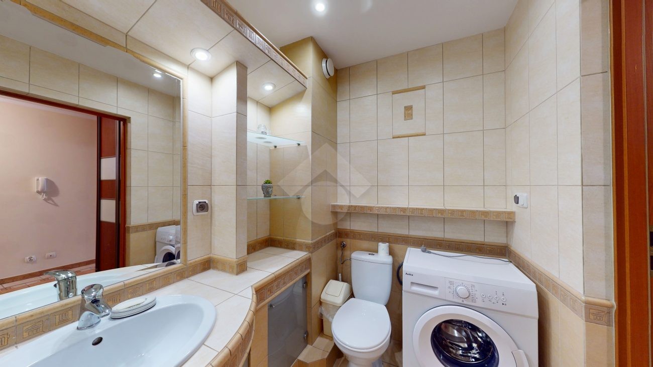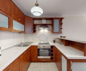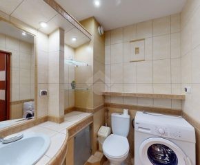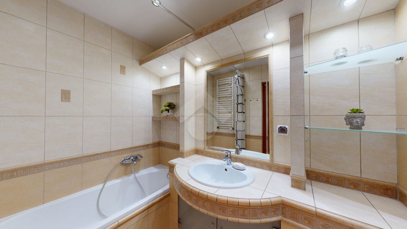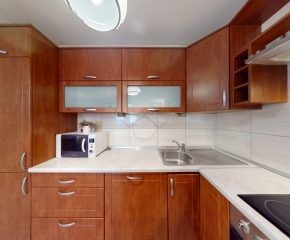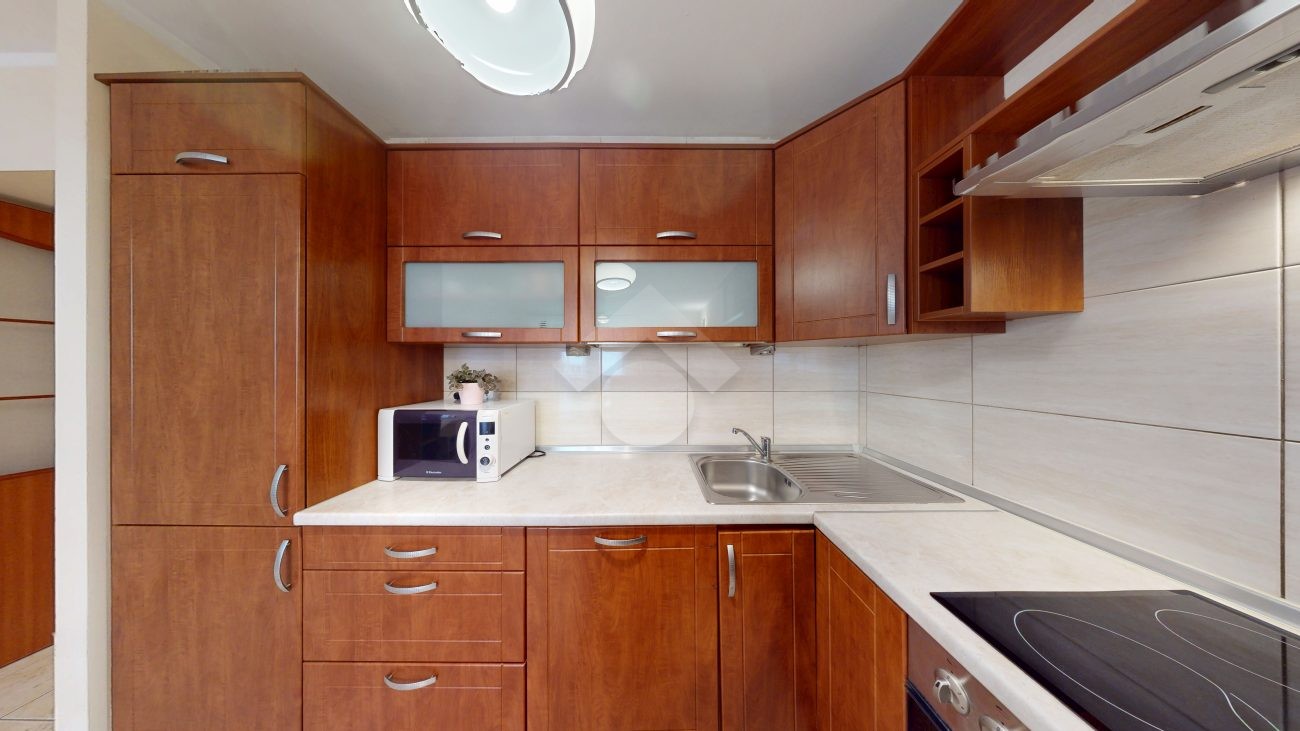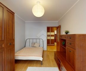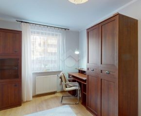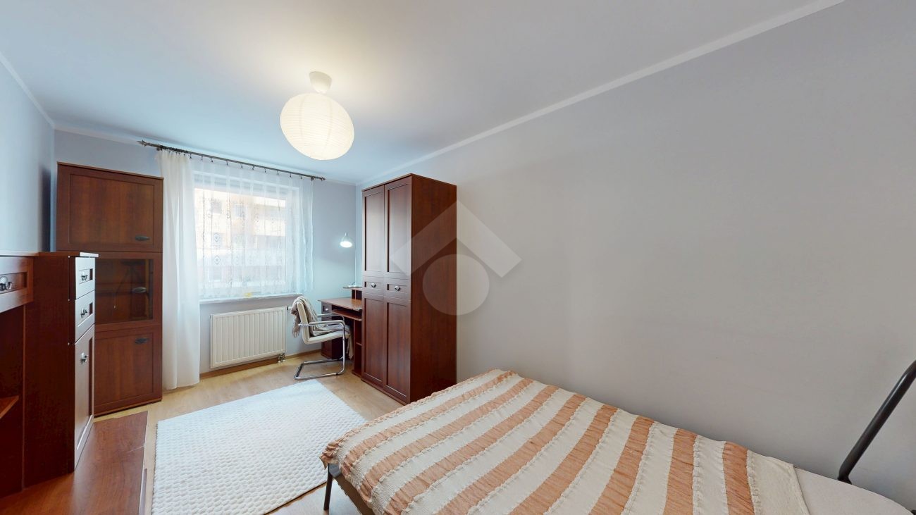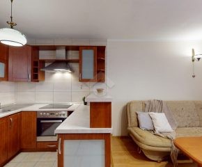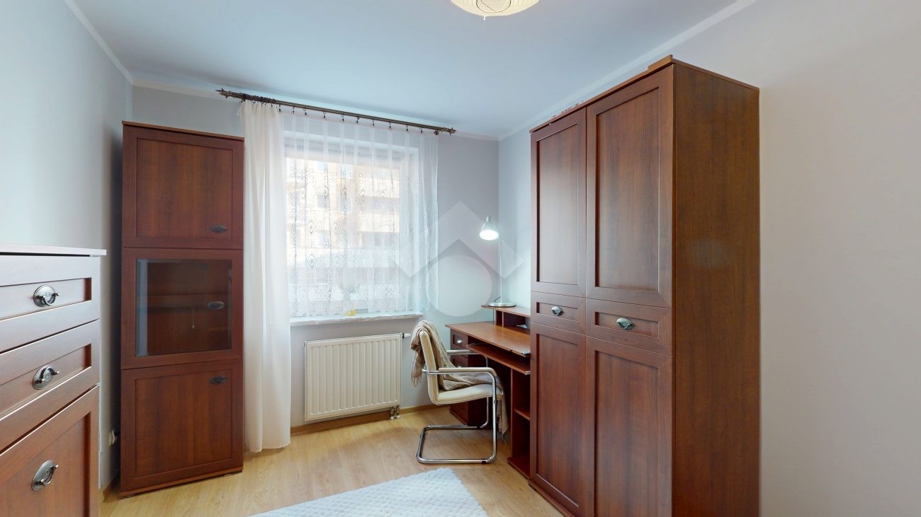 Mieszkanie jest w bardzo dobrym stanie. W salonie i sypialni na podłodze: panele, natomiast w części kuchennej, łazience, na przedpokoju są płytki. Nieruchomość jest w pełni wyposażona. W salonie znajduje się rozkładana kanapa, stolik kawowy, regały. W aneksie kuchennym: zabudowa kuchenna, piekarnik, płyta elektryczna, lodówka z zamrażarką w zabudowie, okap, mikrofalówka. Dużo miejsca do przechowywania oraz blatu roboczego. W sypialni znajduje się duże dwuosobowe łóżko komoda, regał oraz biurko. Łazienka wyposażona w toaletę, nową pralkę, wannę, umywalkę. Ogrzewanie oraz ciepła woda pochodzą z sieci miejskiej. Brak gazu.