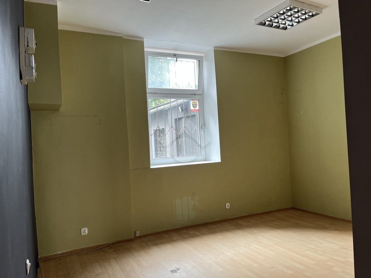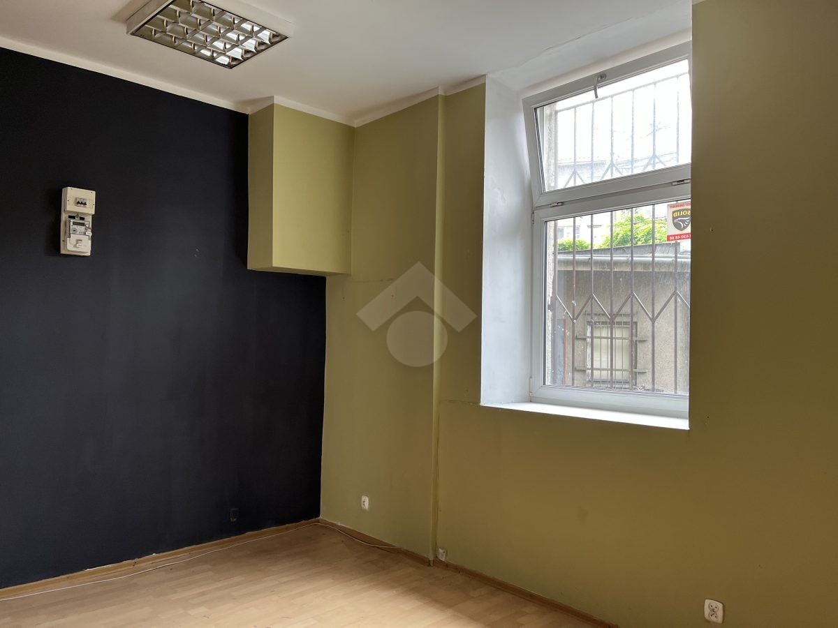 W skład nieruchomości wchodzi sala frontowa z dużą, jasną witryną, drugie pomieszczenie z oknem oraz łazienka z WC.
