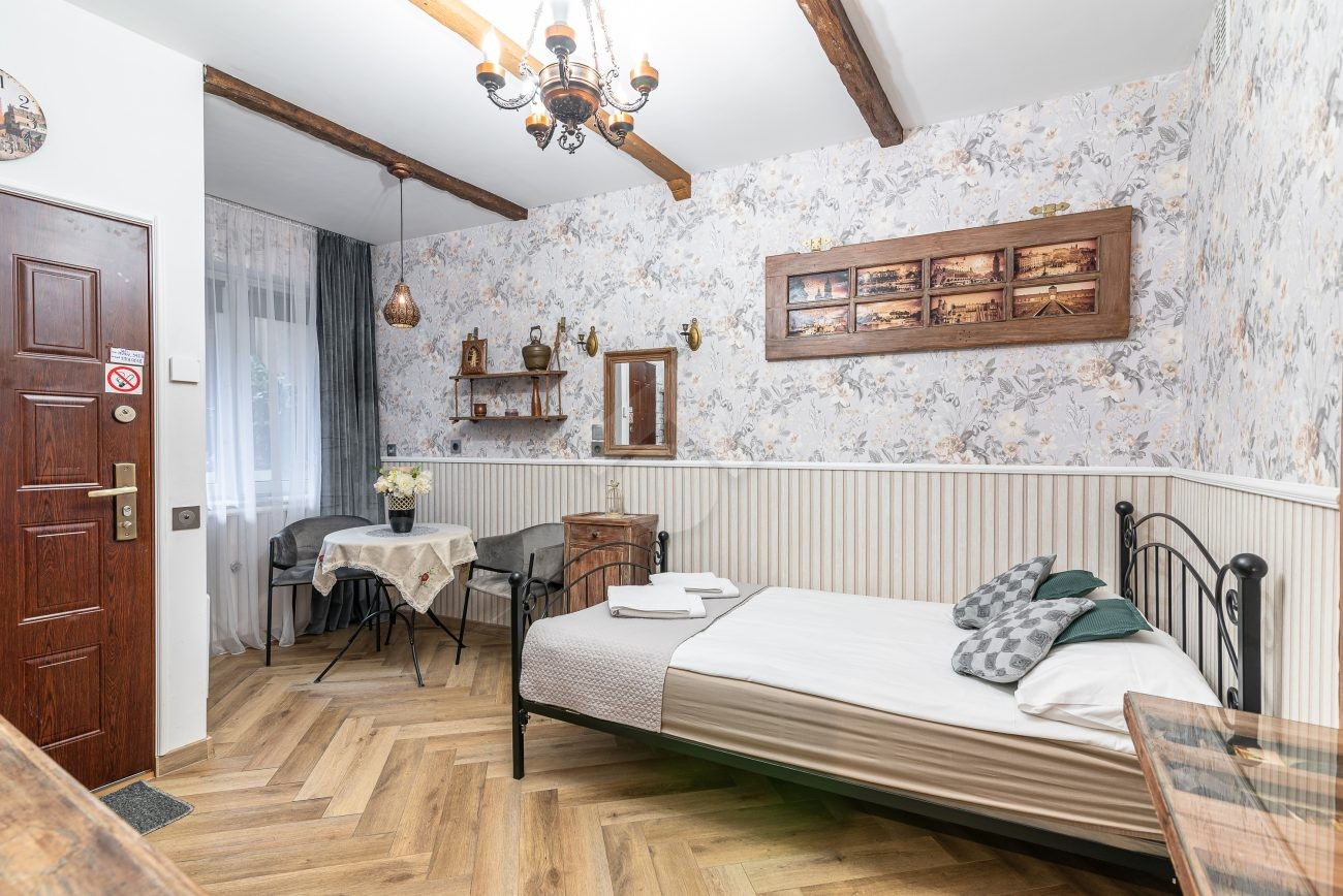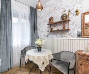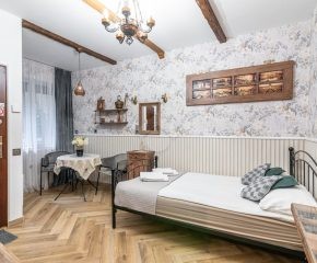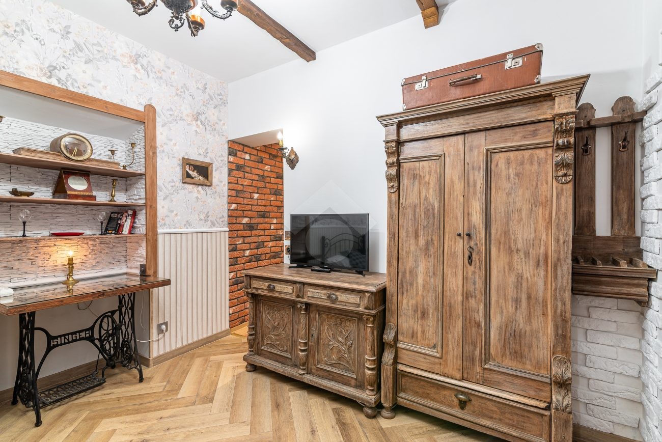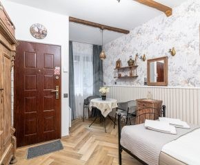 Stan mieszkania: bardzo dobry. Świeżo po remoncie. Nowe okna plastikowe. Na podłodze w obu apartamentach glazura. Ogrzewanie elektryczne. Do kamienicy doprowadzony jest gaz, a każdy z apartamentów ma swój pion kominowy, co stwarza możliwość zmiany sposobu ogrzewania. Ekspozycja południowo-wschodnia. Ze względu na szybki rozwój dzielnicy, mieszkanie może być z powodzeniem wykorzystane jako opłacalna inwestycja, pod wynajem krótkoterminowy dla turystów – możliwość przejęcia całej inwestycji z obsługą przez serwis Booking, firmą sprzątającą i całym wyposażeniem. Spokojna okolica oraz łatwy dostęp do komunikacji miejskiej, która zapewnia dogodne połączenie z centrum miasta.