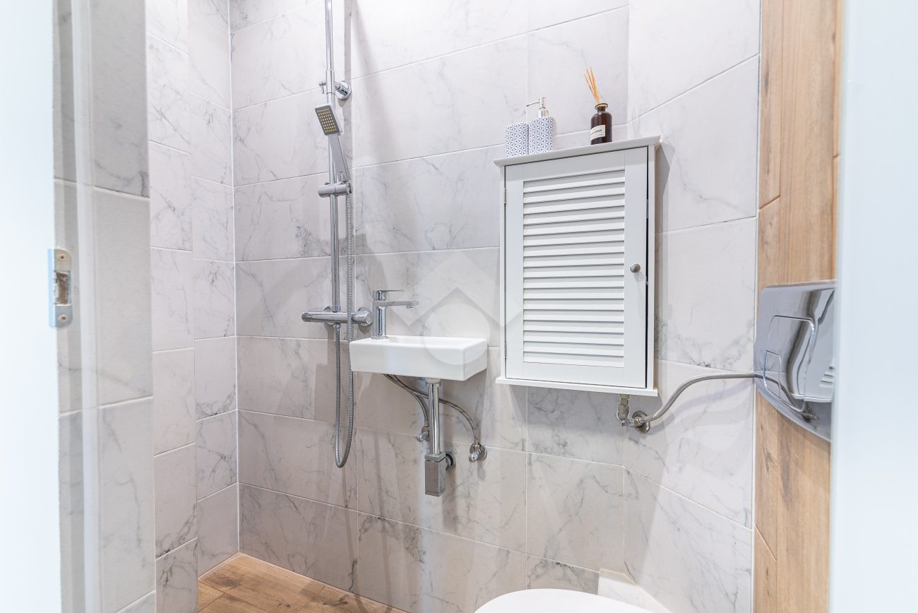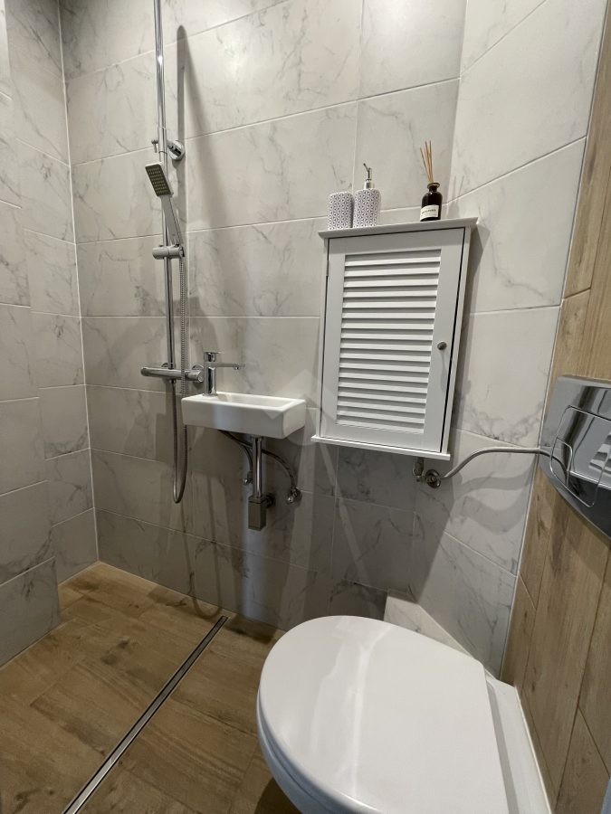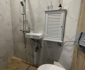 Stan mieszkania: bardzo dobry – mieszkanie zostało odświeżone. Okna nowe plastikowe, instalacja elektryczna wymieniona około 15 lat temu. W pokoju dziennym na podłodze panele, w pozostałej części mieszkania glazura. Kuchnia zabudowana nowymi meblami (jeszcze z folią). Ogrzewanie centralne oraz ciepła woda z sieci MPEC. Mimo relatywnie niewielkich rozmiarów, mieszkanie jest bardzo funkcjonalne, przy jego aranżacji starano się jak najlepiej wykorzystać dostępną przestrzeń.