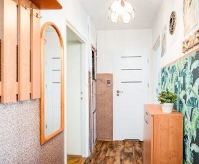 Stan mieszkania: bardzo dobry, do odświeżenia. Kuchnia oraz łazienka całkowicie wyremontowane 3 lata temu. W obu pokojach drewniany parkiet, podłogę w przedpokoju wypełnia linoleum natomiast w kuchni oraz łazience znajdują się płytki. Instalacja elektryczna wymieniona około 15 lat temu. Okna plastikowe. Ogrzewanie – kotłownia gazowa. Dwustronna ekspozycja północny-zachód/południowy-wschód. Mieszkanie w pełni umeblowane, gotowe do zamieszkania od zaraz.