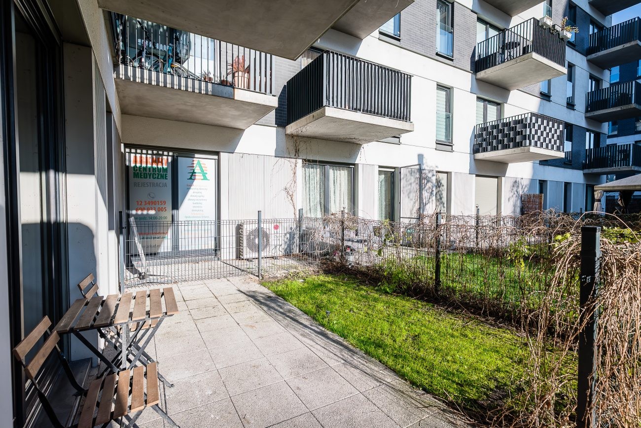 Nieruchomość: lokal niemieszkalny o powierzchni 42,39 m2, położony na parterze w sześciopiętrowym apartamentowcu z 2016 roku, posiadający własny ogródek. W skład nieruchomości wchodzi przestronny pokój – open space oraz toaleta.