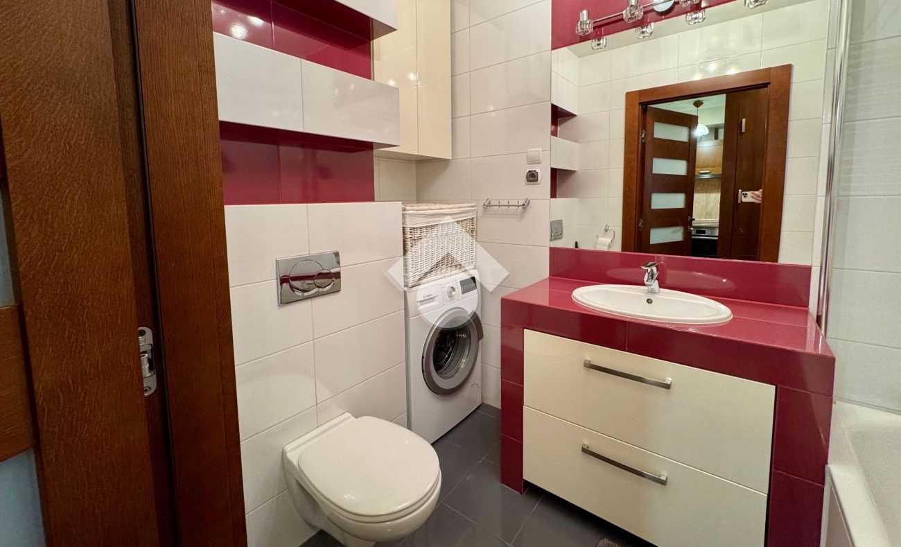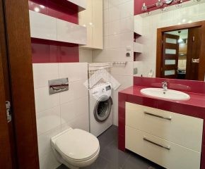 W lokalu znajdują się niezbędne sprzęty takie jak: zmywarka, pralka, lodówka, kuchenka z piekarnikiem, odkurzacz.