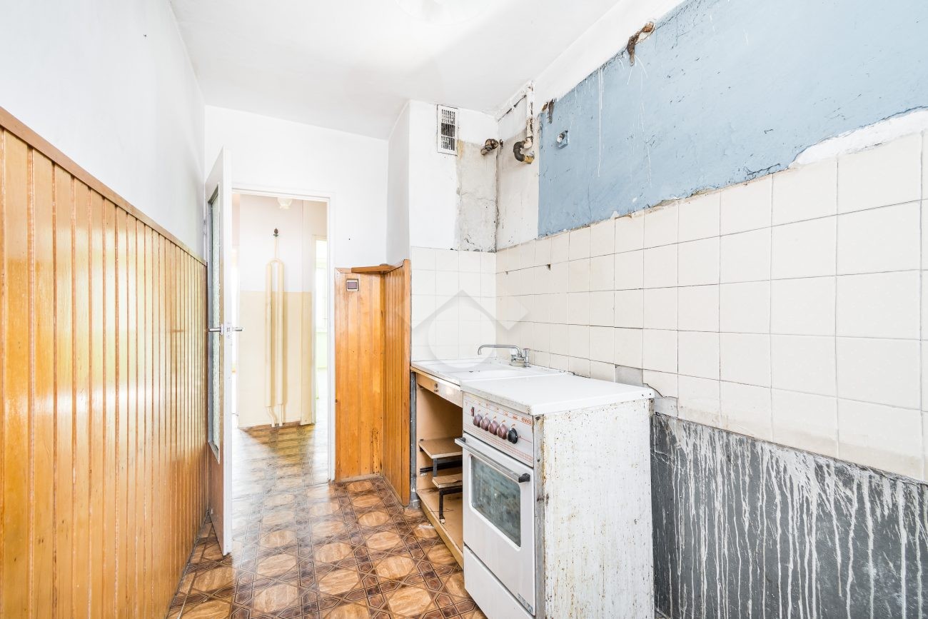 Thanks to its north–south exposure, the apartment is well-lit and naturally ventilated throughout the day. The property is in need of general renovation, allowing the future owner complete freedom to design the interior according to personal taste and needs.