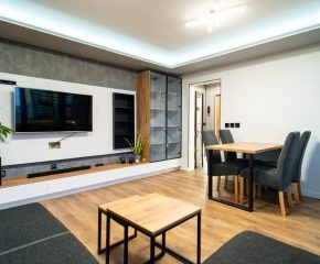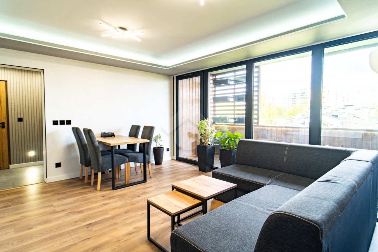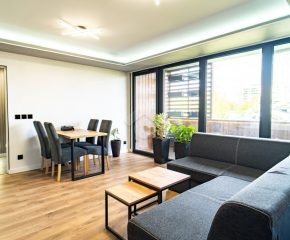 Mieszkanie jest jasne, przestronne świeżo po remoncie, urządzone w nowoczesnym stylu oraz z nowym sprzętem AGD z system SmartThings, dzięki czemu Najemca ma pełną zdalną kontrole nad obsługa sprzętów AGD oraz klimatyzacji.