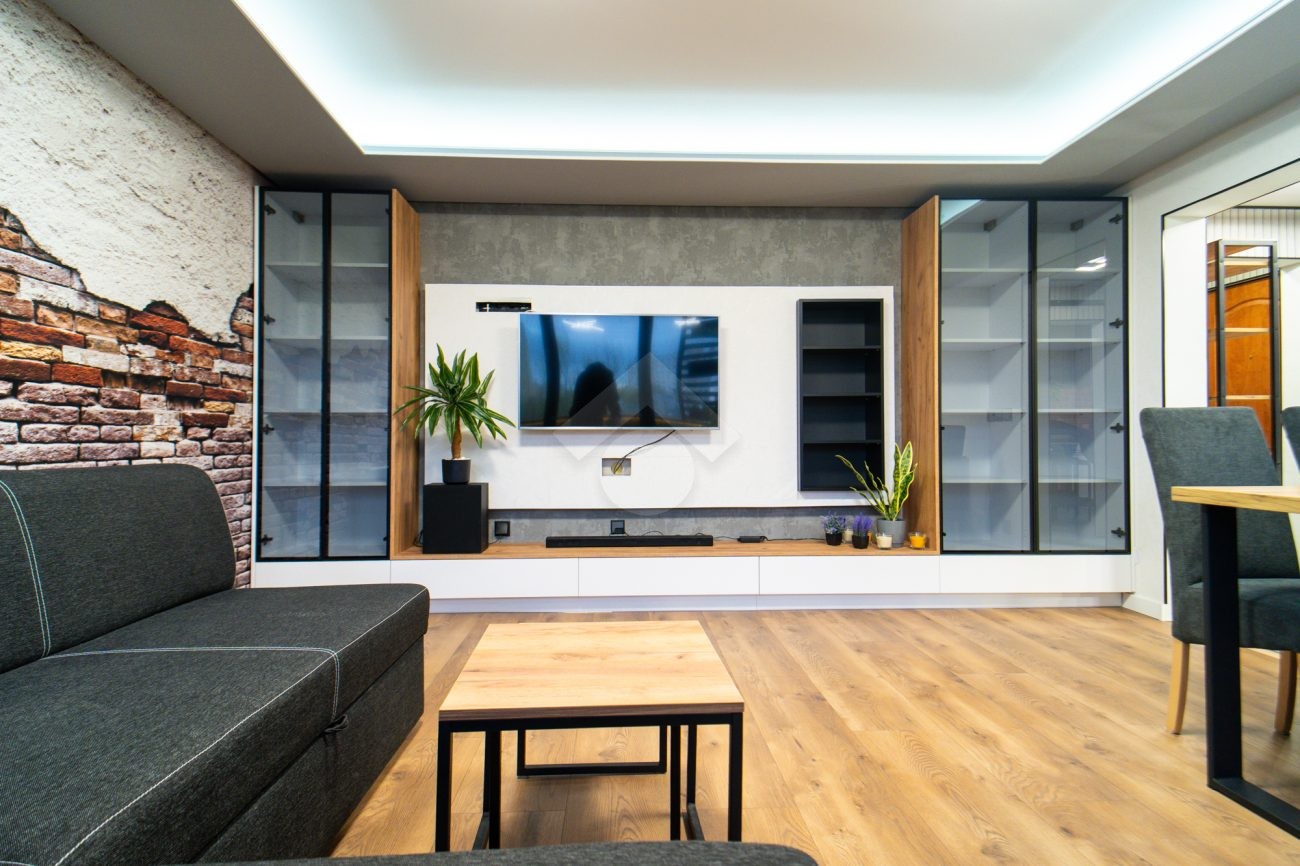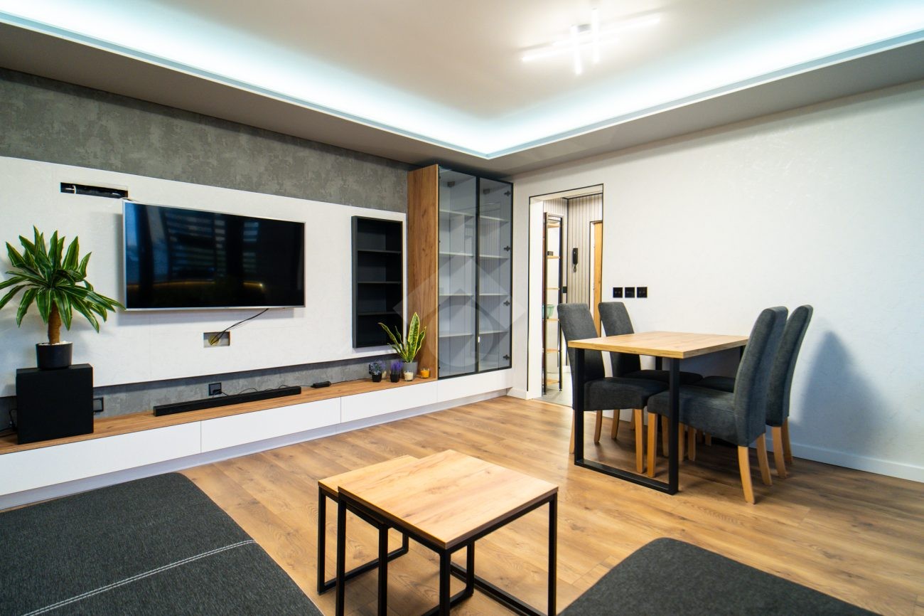 The apartment is bright, spacious, freshly renovated, and furnished in a modern style. It comes with new household appliances integrated with the SmartThings system, allowing the tenant full remote control over appliances and air conditioning.