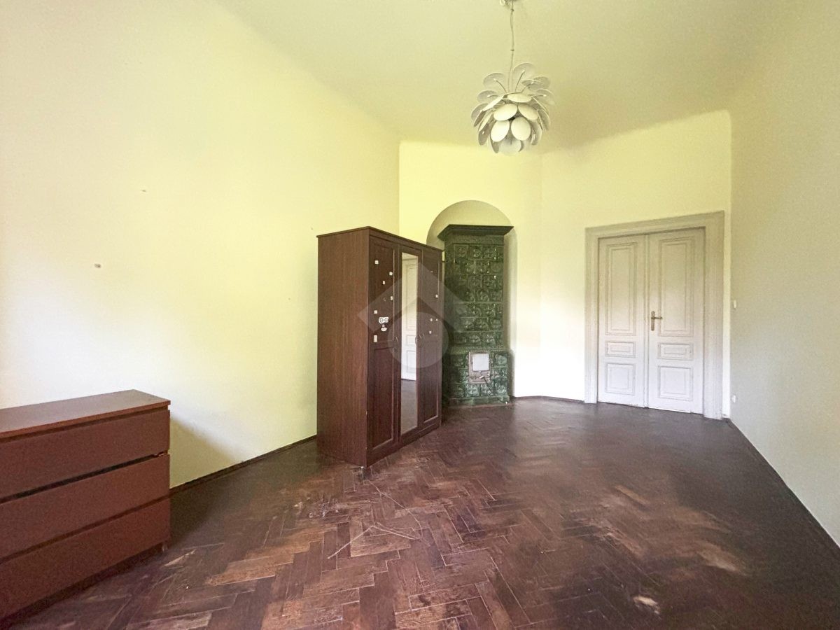 Property: 75 m² apartment located on the second floor of a pre-war tenement building. The property comprises 3 rooms (one with a kitchenette), a bathroom, a hall, a utility room, and a balcony. Electric heating.