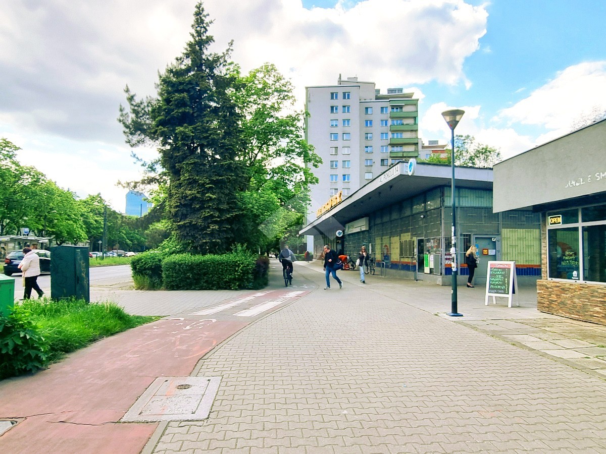 Real Estate: Premises with a shop window, with an area of approx. 16 m2 located on the ground floor of the pavilion at Pokoju Avenue in the Grzegórzki district. The main room with a shop window is equipped with a kitchen area: oven, refrigerators connected to the countertop, induction cooker, hood, freezer, large refrigerator and bathroom with toilet.