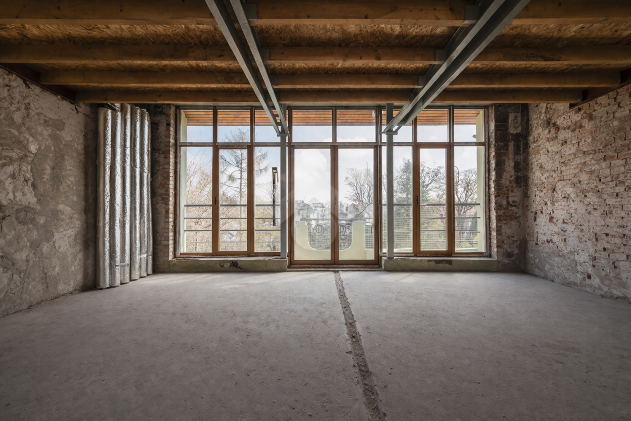 Stan lokalu: Do remontu. Obecnie właściciel jest w trakcie przygotowywania projektu prac remontowych, co daje możliwość potencjalnemu najemcy dopasowania układu nieruchomości do swoich potrzeb. W pokojach na ścianach wyeksponowana oryginalna cegła natomiast struktura podłogi do ustalenia. Olbrzymim atutem mieszkania jest „ściana okien”, która tworzy okazałą przestrzeń oraz doprowadza do lokalu dużą ilość światła.