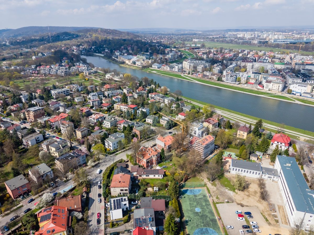 The property is located in a rapidly developing area of Stare Dębniki, near Rynek Dębnicki, Forum Przestrzenie, Rondo Grunwaldzkie, and the ICE Kraków Congress Centre. The area offers numerous shops, commercial and service points, public facilities, as well as public transport stops (both tram and bus), ensuring easy access to any part of Kraków.
