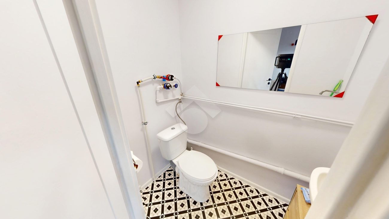 Łazienka, mimo niewielkich rozmiarów, jest nowoczesna i funkcjonalna. Wyposażona została w toaletę i umywalkę.