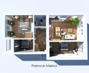 • Układ trzech pokoi zapewniający komfort i funkcjonalność.