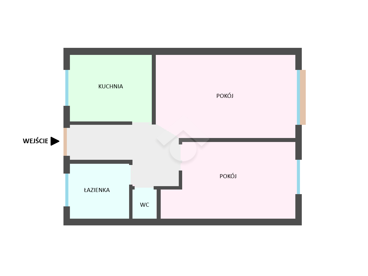 Stan mieszkania: DOBRY – nieruchomość odświeżona, kompletnie wyposażona i gotowa do zamieszkani, w standardzie wystarczającym pod wynajem. W przypadku zakupu „dla siebie” stan mieszkania można potraktować jako do remontu, z możliwością praktycznie dowolnej aranżacji – wszystkie ściany są działowe. Bardzo łatwo można uzyskać układ 3-pokojowy (dwie sypialnie + salon z aneksem kuchennym).