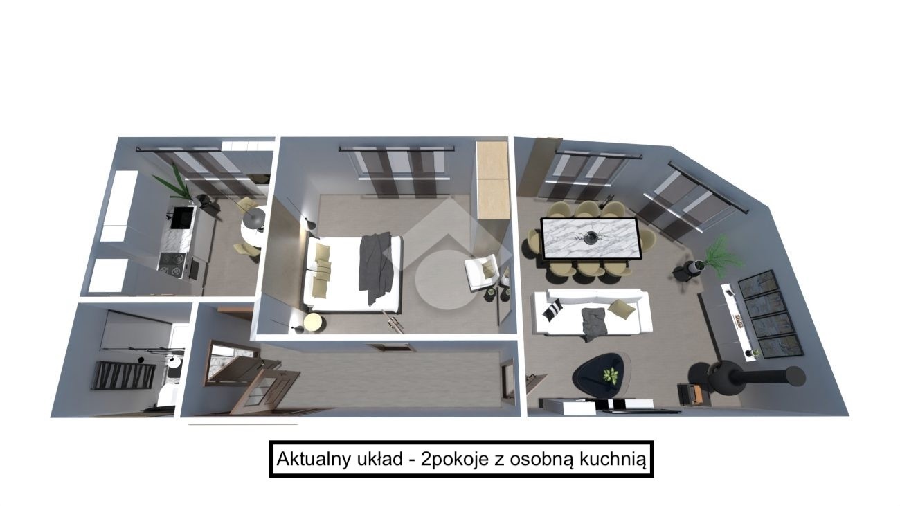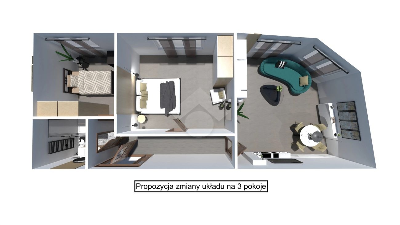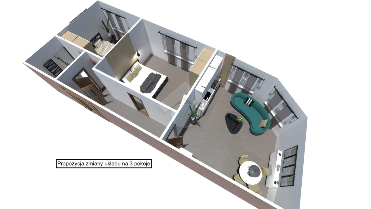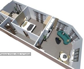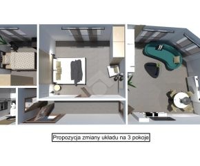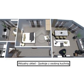 Nieruchomość posiada wiele możliwości adaptacyjnych przez co w łatwy sposób i przy niewielkim nakładzie finansowym jesteśmy w stanie uzyskać dwie niezależne sypialnie oraz salon z aneksem kuchennym. Na podłogach znajduje się parkiet w całkiem dobrym stanie, przy jego odświeżeniu może służyć i wyglądać estetycznie przez wiele lat.