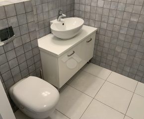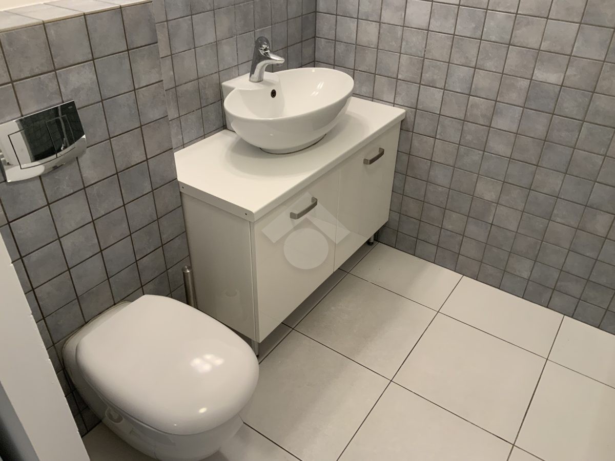 W łazience: prysznic, umywalka, toaleta, pralka.