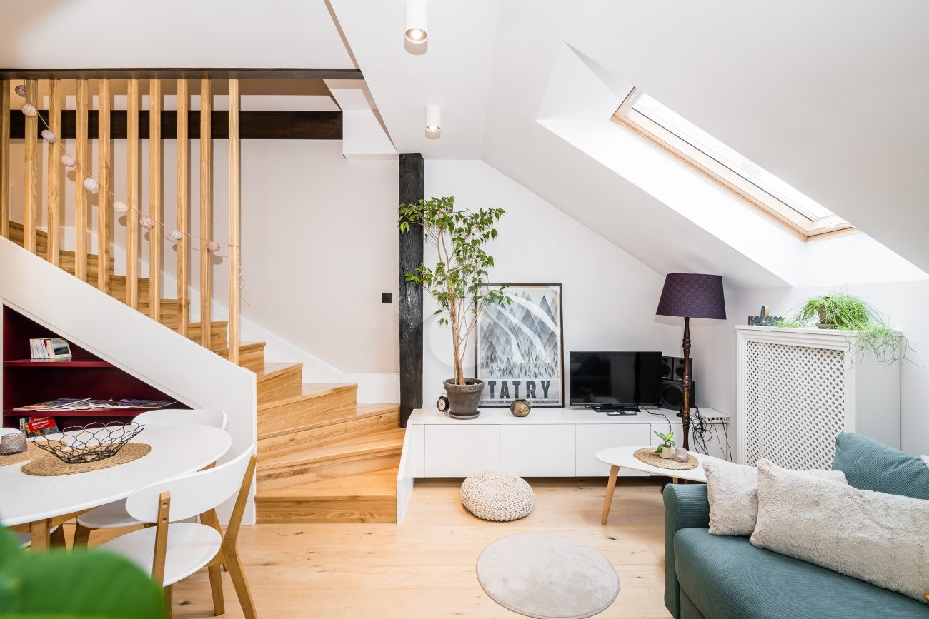 Nieruchomość: Oferujemy Państwu mieszkanie o powierzchni użytkowej 38,37 m² oraz całkowitej około 62 m². Lokal jest gotowy do zamieszkania i składa się z dwóch poziomów. Na pierwszym poziomie znajduje się przedpokój, salon z aneksem kuchennym oraz łazienka z WC. Na drugim poziomie mieści się hall oraz sypialnia z przepięknym widokiem na Wawel.  W przedpokoju znajduje się pojemna szafa w zabudowie, zapewniająca dużo miejsca do przechowywania. Aneks kuchenny został wyposażony w wysokiej klasy sprzęt AGD, który doskonale komponuje się z nowoczesną aranżacją wnętrza. W salonie uwagę przyciąga efektownie wyeksponowana więźba dachowa, natomiast w łazience znajduje się przeszklony prysznic typu walk-in z deszczownicą. Na antresolę prowadzą solidne, pełne schody, pod którymi zaaranżowano dodatkowe miejsce do przechowywania w formie praktycznej zabudowanej szafy.