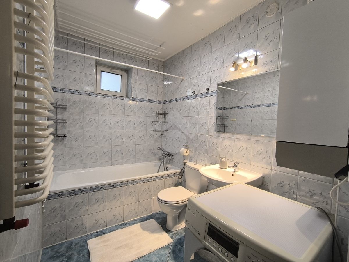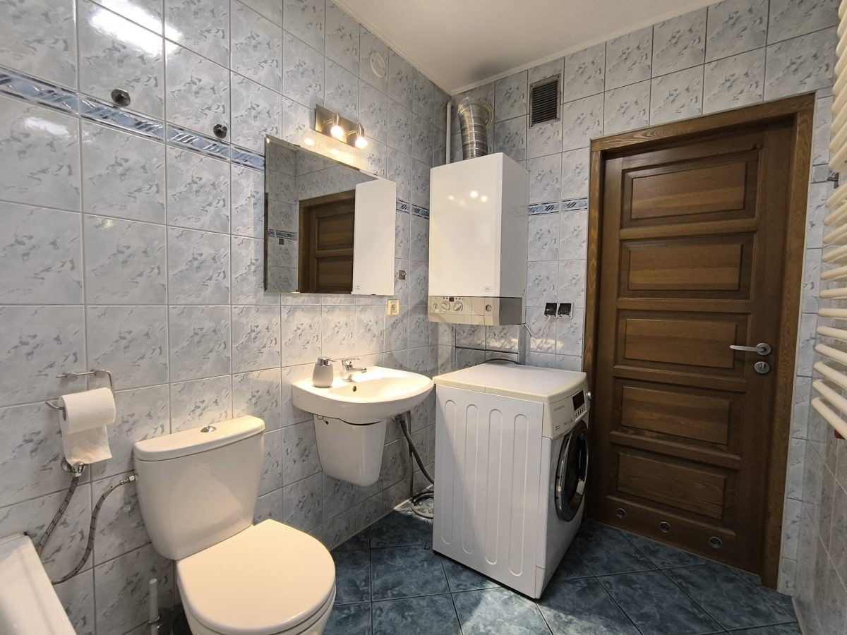 Stan nieruchomości: DOBRY – Ogrzewanie oraz ciepła woda realizowane za pomocą piecyka dwufunkcyjnego gazowego. Nieruchomość dobrze doświetlona ze względu na dużą liczbę okien. Salon wyposażony w duży narożnik , stolik, szafkę pod TV witrynę oraz komodę. W Kuchni piekarnik, płyta elektryczna, zmywarka, lodówko – zamrażarka oraz stół z dwoma krzesłami. W łazience pralka, wanna, umywalka oraz suszarka na pranie, a w przedpokoju szafa w zabudowie oraz komoda. Sypialnia wyposażona w duże łóżko, szafę w zabudowie oraz szafki.