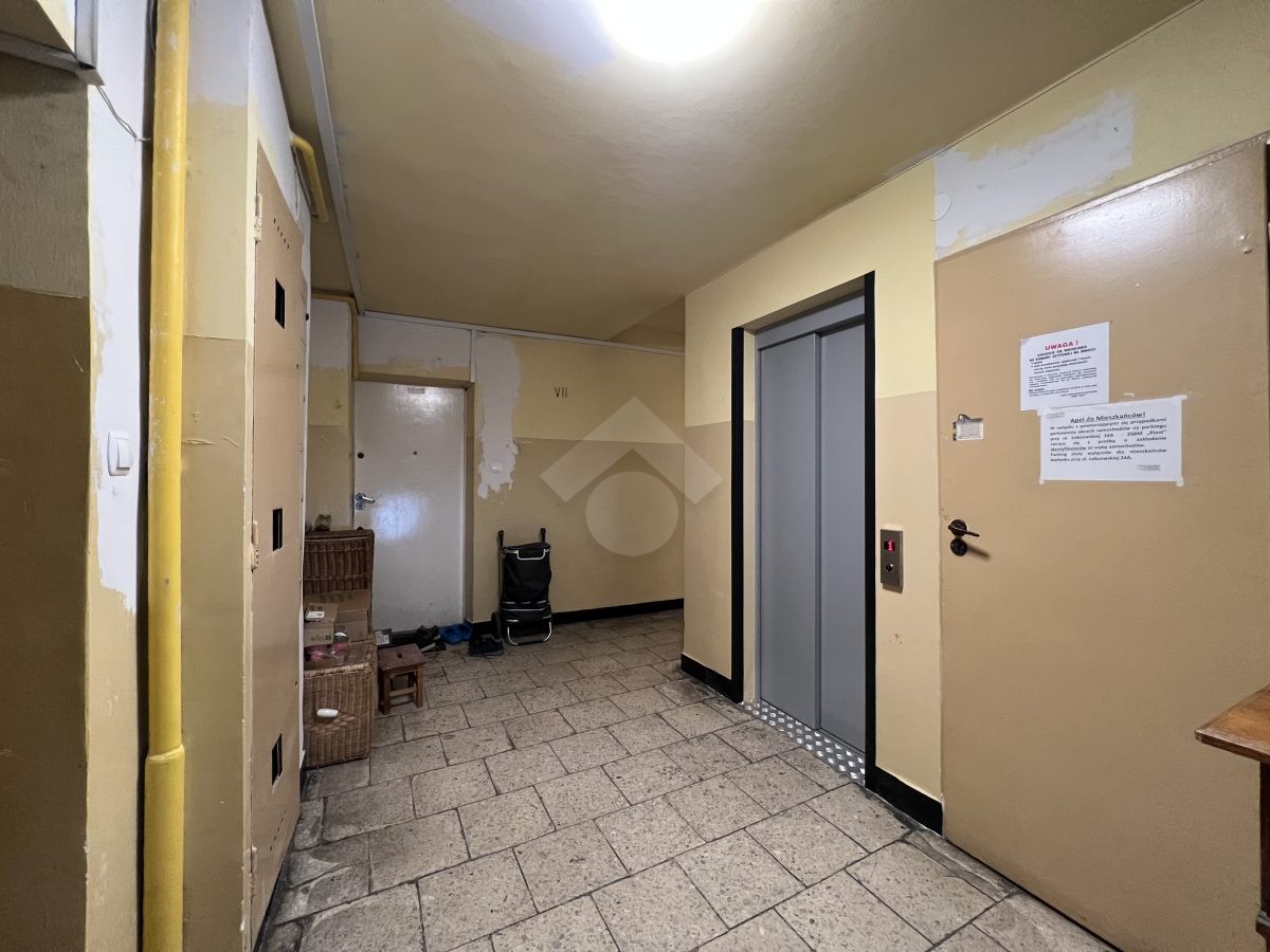 Stan budynku: Dobry – mieszkanie znajduje się w bloku z cegły z lat 50, z windą i miejskim ogrzewaniem. Budynek umiejscowiony jest na zamkniętym terenie z dużym ogródkiem, co czyni go cichym i oddalonym od ulicy.
