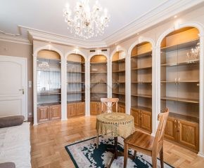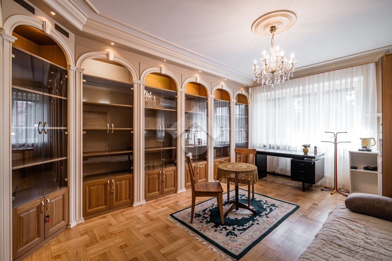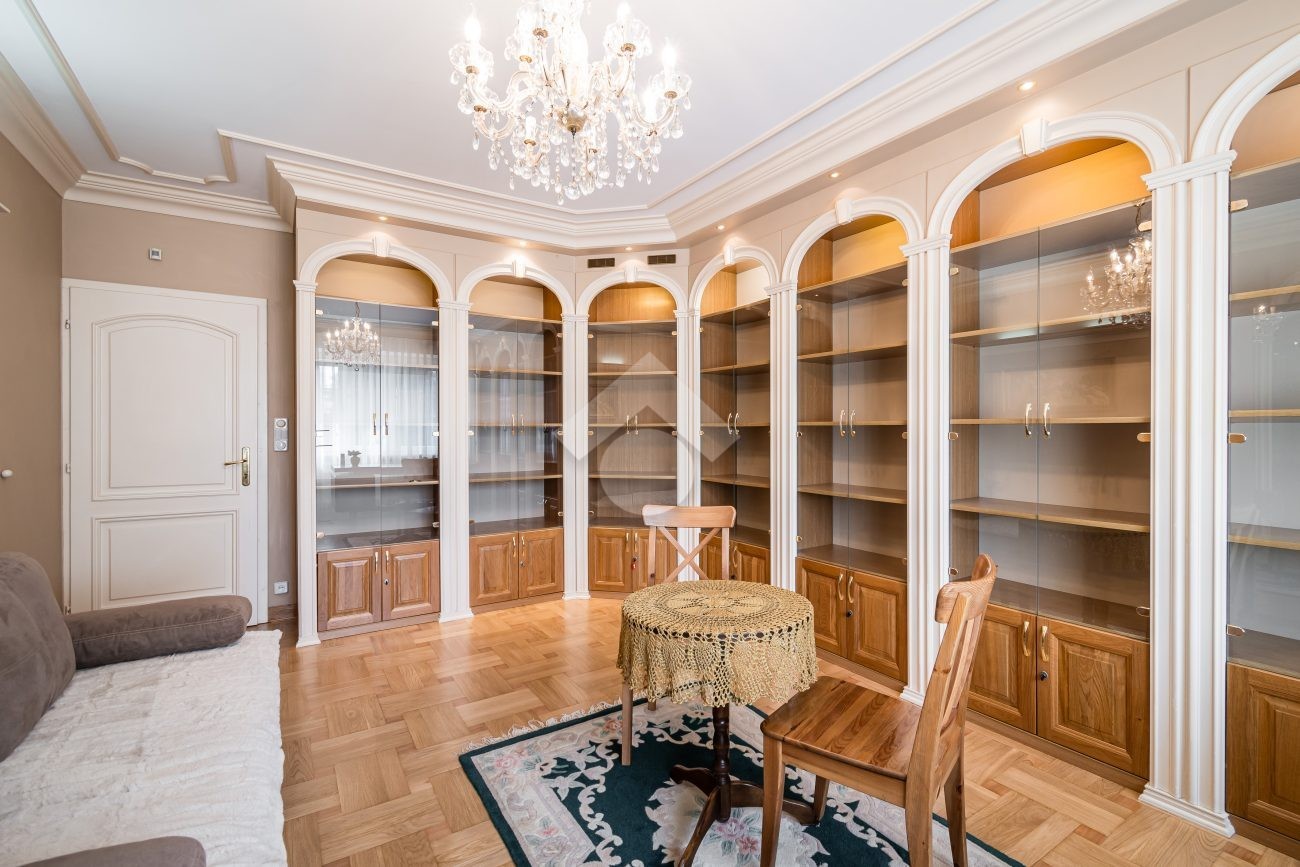 Opis nieruchomości: W pokoju znajduje się rozkładana sofa, komoda, stolik, szafka, biurko oraz duże szklane regały książkowe. Kuchnia wyposażona w sprzęty AGD, tj. piekarnik, płyta gazowa, lodówka z zamrażarką. W łazience toaleta, oraz wanna z prysznicem Dodatkowym atutem mieszkania jest pomieszczenia rekreacyjne, piękny ogród z altaną i fontanną, miejsca postojowe i miejsca garażowe, powierzchnia magazynowa w przyziemiu, bardzo wysoki standard wykończenia całego budynku. Ciekawa architektura, doskonałej klasy materiały wykończeniowe, kompletne i ekskluzywne wyposażenie.