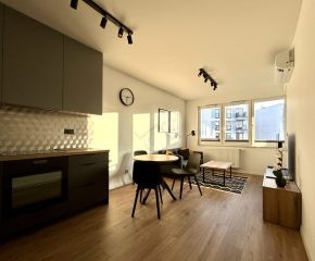 Przestronne dwupokojowe mieszkanie z balkonem, znajdujące się w nowoczesnym budownictwie tuż przy Wiśle.