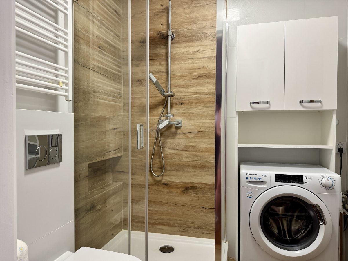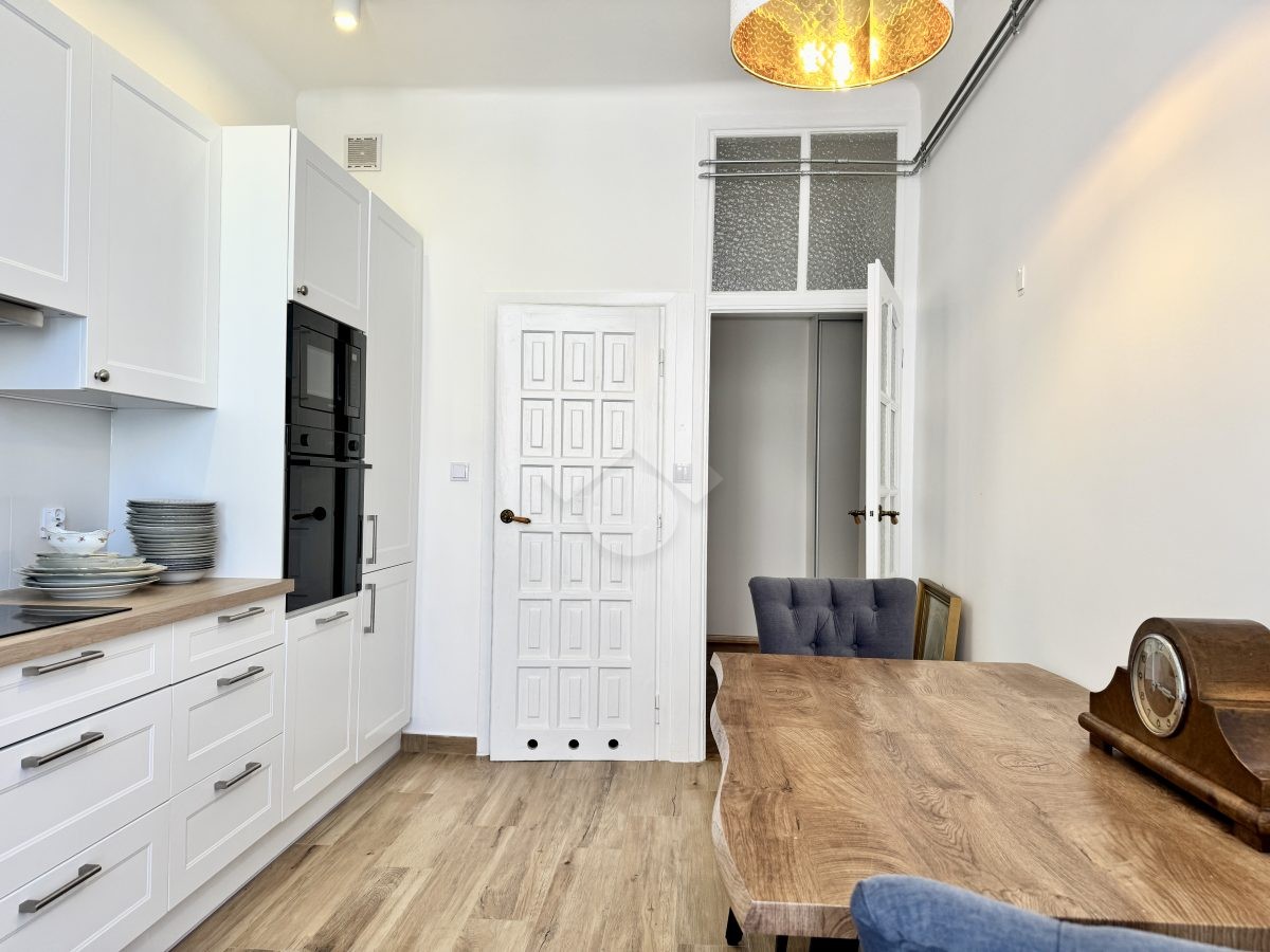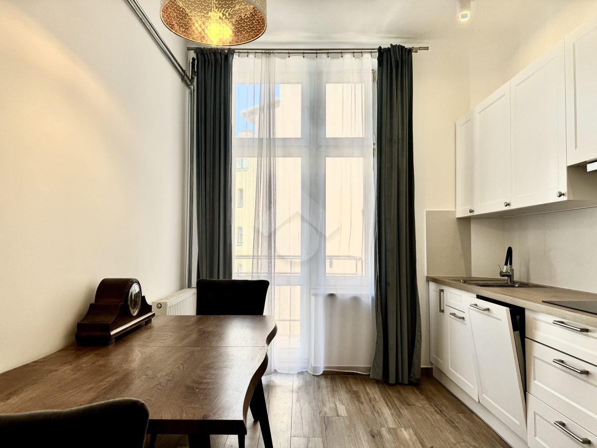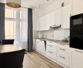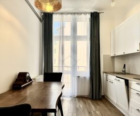 Mieszkanie jest po remoncie. Zachowany został parkiet w bardzo dobrym stanie. Kuchnia jest umeblowana, wyposażona w pralkę, kuchenkę gazową oraz duży stół z krzesłami. W łazience znajduje się prysznic. W korytarzu znajduje się pojemna szafa. W jednym z pokoi dostępna jest wygodna kanapa.