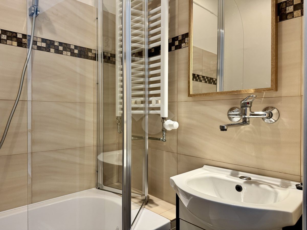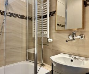 Mieszkanie jest po remoncie. Zachowany został parkiet w bardzo dobrym stanie i klasyczne drewniane drzwi. Kuchnia jest umeblowana, wyposażona w pralkę i kuchenkę gazową. W łazience znajduje się wanna.