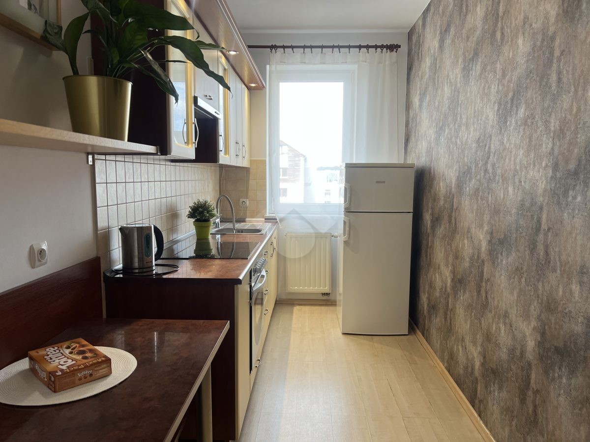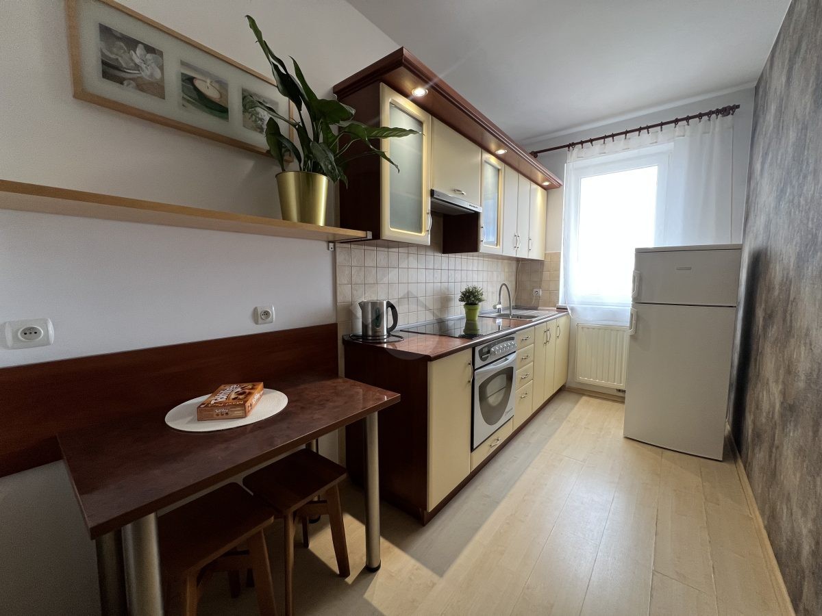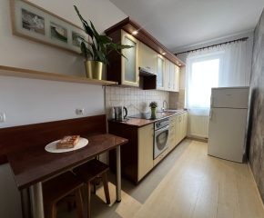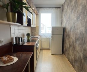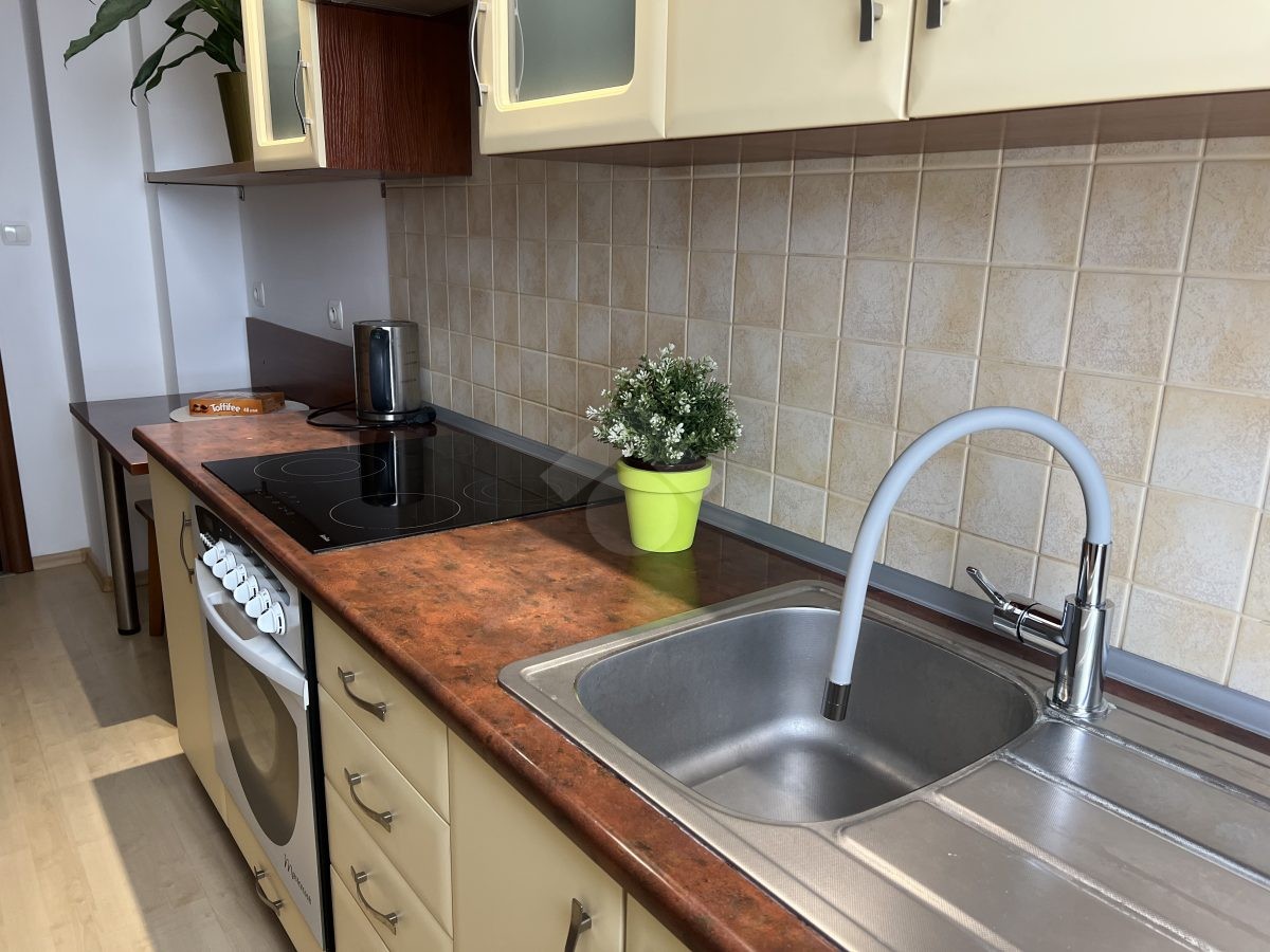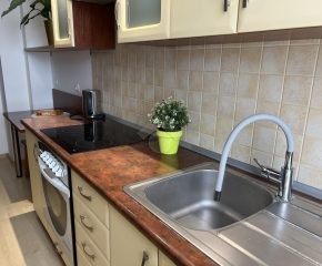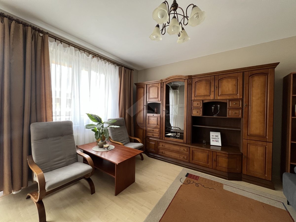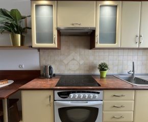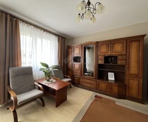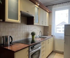 W przedpokoju duża szafa w zabudowie oraz wieszak na kurtki. Pokój wyposażony jest w rozkładaną kanapę z funkcją spania, stolik kawowy, dwa fotele, duży regał oraz biurko z krzesłem. Z pokoju wyjście na balkon. W kuchni znajduje się stolik z dwoma krzesłami, duża lodówka, płyta indukcyjna, piekarnik, okap oraz czajnik. Kuchnia wyposażona została również w najpotrzebniejsze naczynia oraz sztućce. Łazienka z prysznicem, WC oraz pralką. W oknach zamontowano rolety. Mieszkanie w bardzo dobrym stanie, świeżo po malowaniu, wyposażone oraz gotowe do zamieszkania. W pobliżu liczne sklepy oraz punkty usługowe.