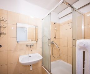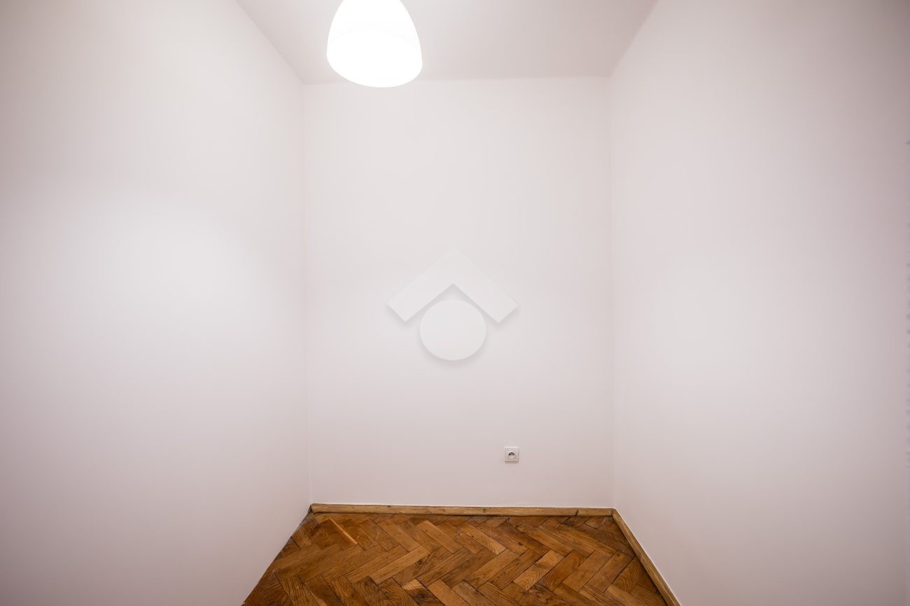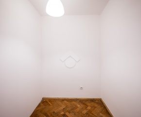 The rooms feature elegant oak parquet flooring, which can regain its original shine after sanding and refinishing. The kitchen, bathroom, and WC are fitted with tiles.