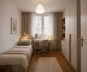 The apartment is situated in a well-connected area that combines the quiet of a residential neighborhood with full access to urban infrastructure. Nearby you will find numerous shops, schools, kindergartens, and service points.