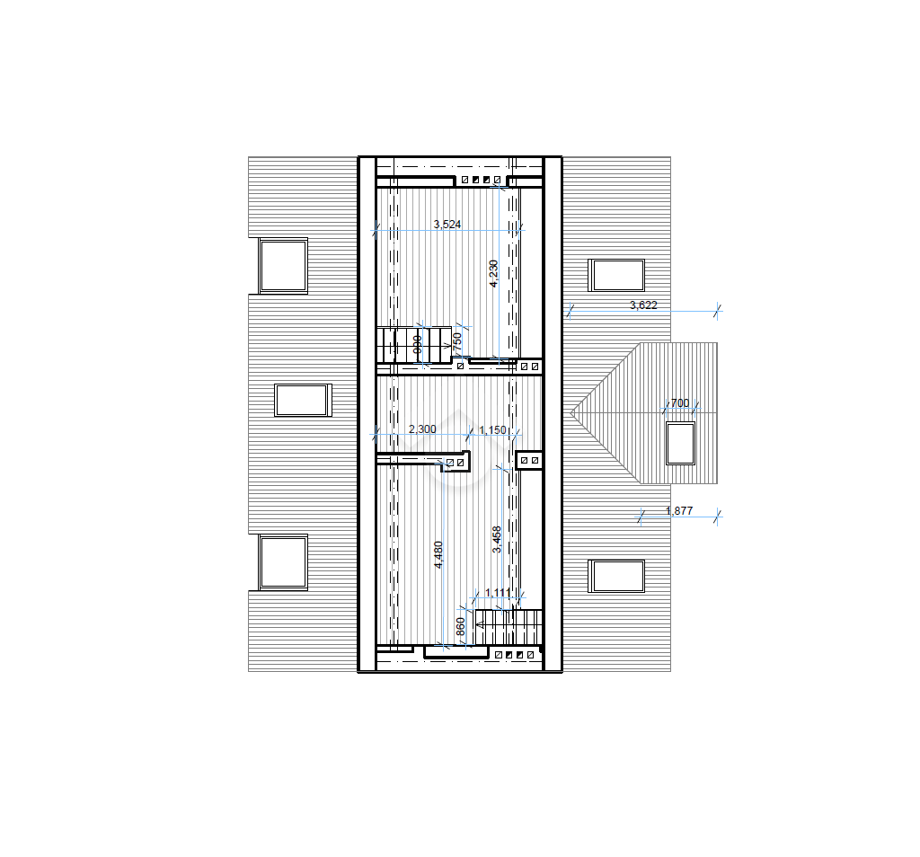 Nieruchomość: Strych do adaptacji zajmujący całe piętro drugie o powierzchni użytkowej 61 m2, a całkowitej 102 m2. Wyodrębniona księga wieczysta. Wstępny projekt podziału strychu na dwa mieszkania.