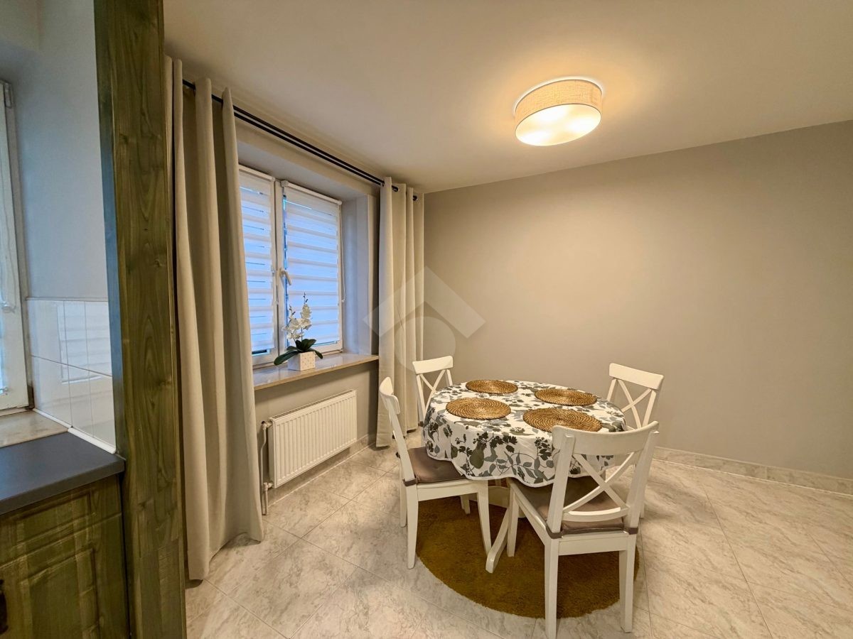 Property in very good condition. It consists of a spacious room with open kitchen and dining room, two bedrooms, hallway and bathroom with toilet. Kitchen equipped with high quality appliances designed for everyday use. The bathroom has a bath, sink, washing machine and toilet. Heating and hot water from the municipal network.