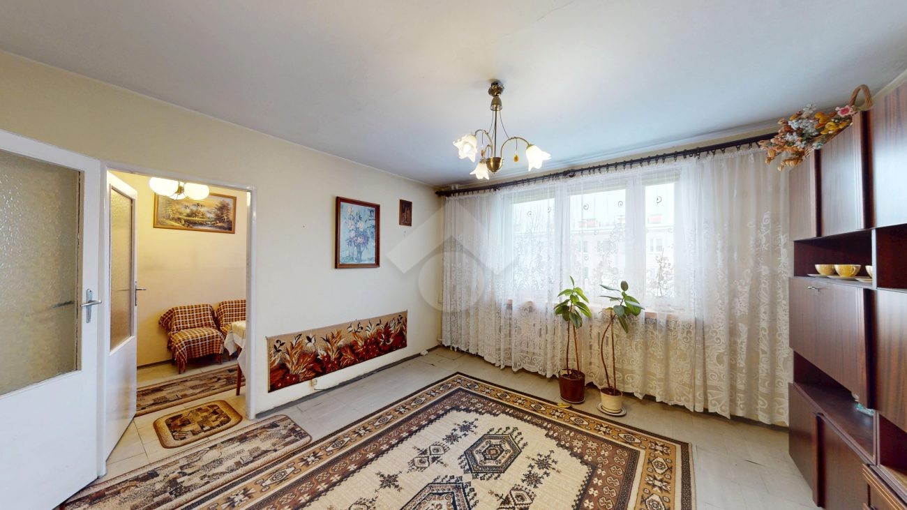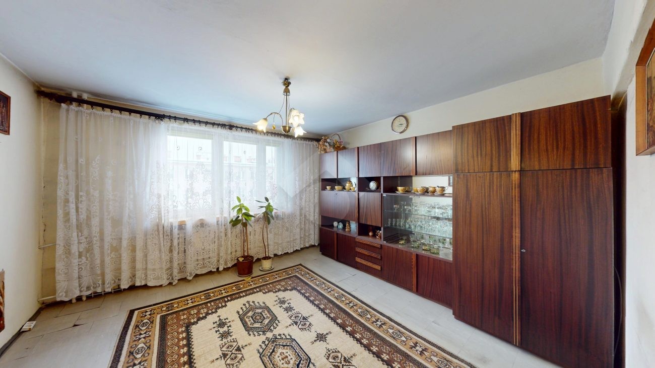 Mieszkanie jest w stanie do zamieszkania i składa się z trzech ustawnych pokoi, w tym jednego przechodniego. Salon jest jasny i przestronny, doskonale doświetlony naturalnym światłem.