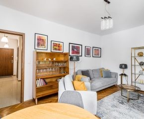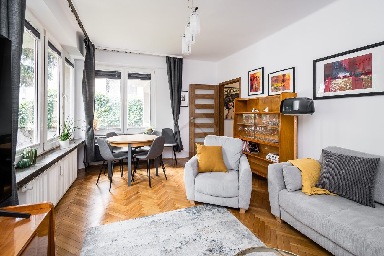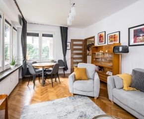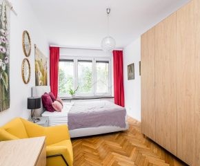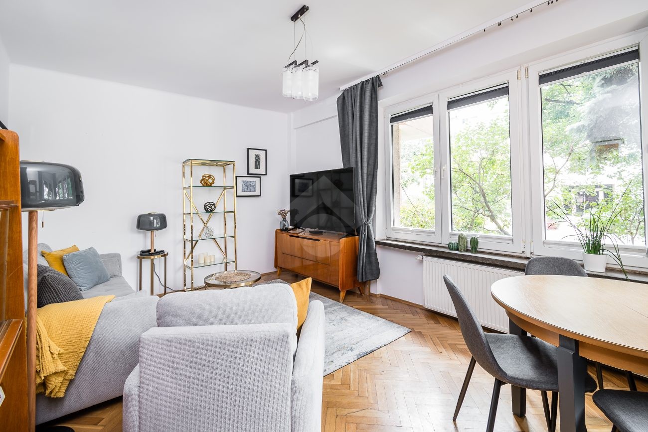 Mieszkanie znajduje się w zadbanym czteropiętrowym budynku z cegły z 1964 roku. Zadbane części wspólne. Na terenie budynku dostępne miejsca postojowe dla mieszkańców oraz stojaki na rowery.