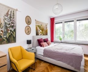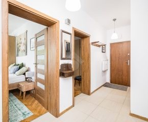 Mieszkanie zostało funkcjonalnie zaprojektowane. Dogodny rozkład pomieszczeń pozwolił na wygospodarowanie 3 osobnych pokoi oraz osobnej kuchni z oknem. Mieszkanie ma trzystronną ekspozycja, wschód – południe – zachód dzięki czemu jest bardzo dobrze naświetlone przez cały dzień. Dodatkowo do mieszkania przynależy parking za szlabanem dla mieszkańców budynku.