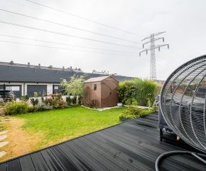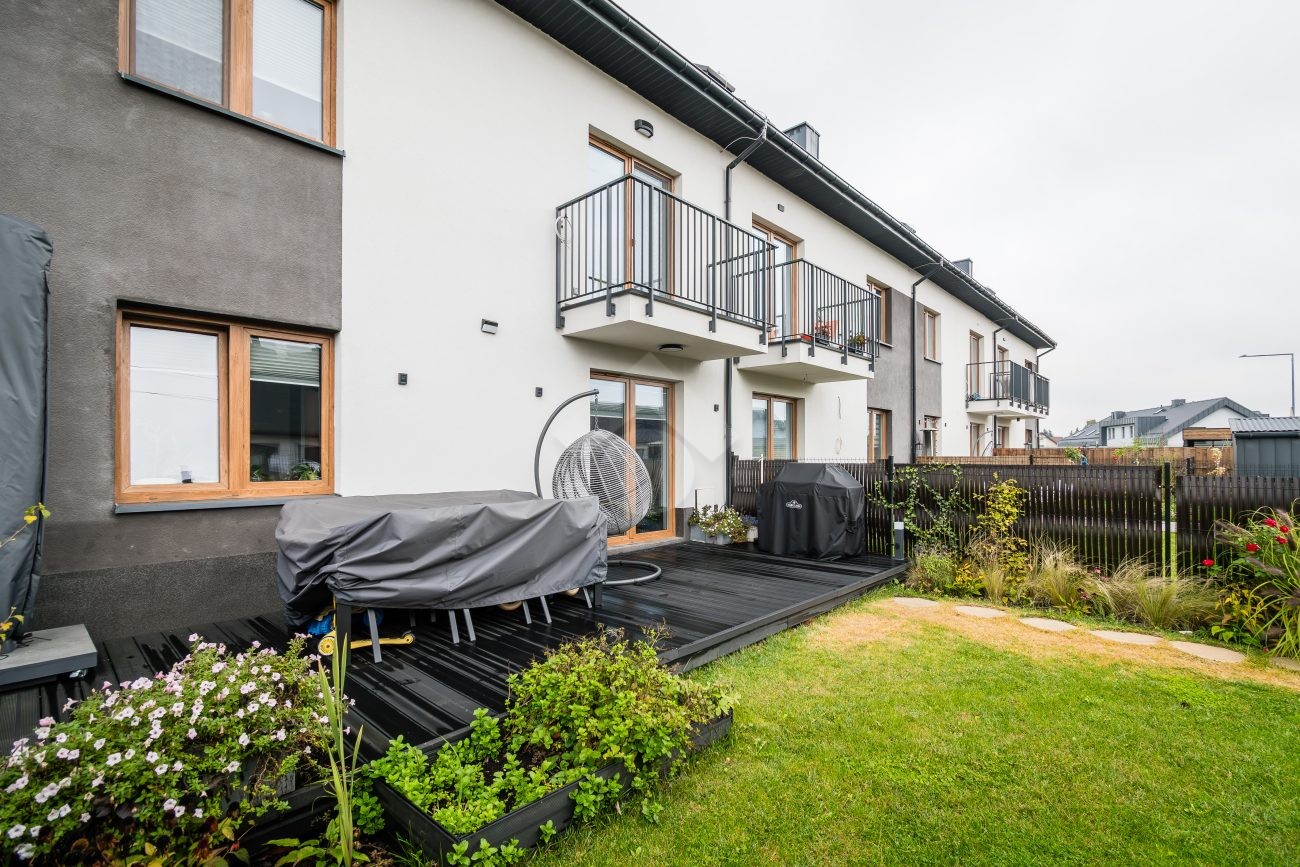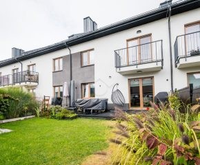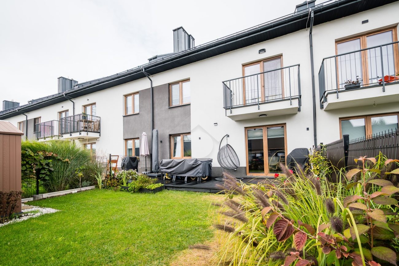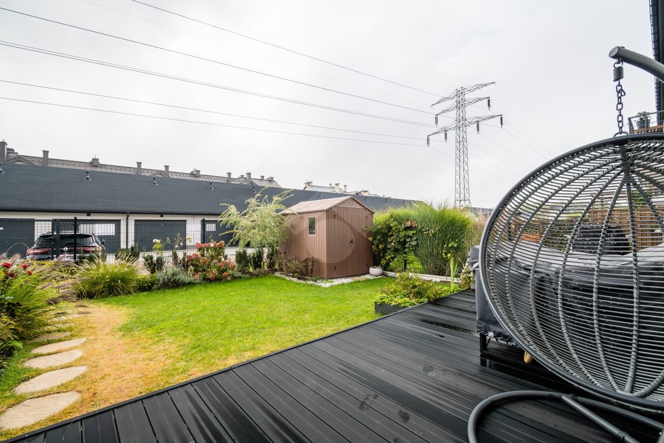 Dodatkowym atutem jest ogród, w którym znajdują się meble ogrodowe oraz domek gospodarczy idealny do przechowywania narzędzi i innych rzeczy.