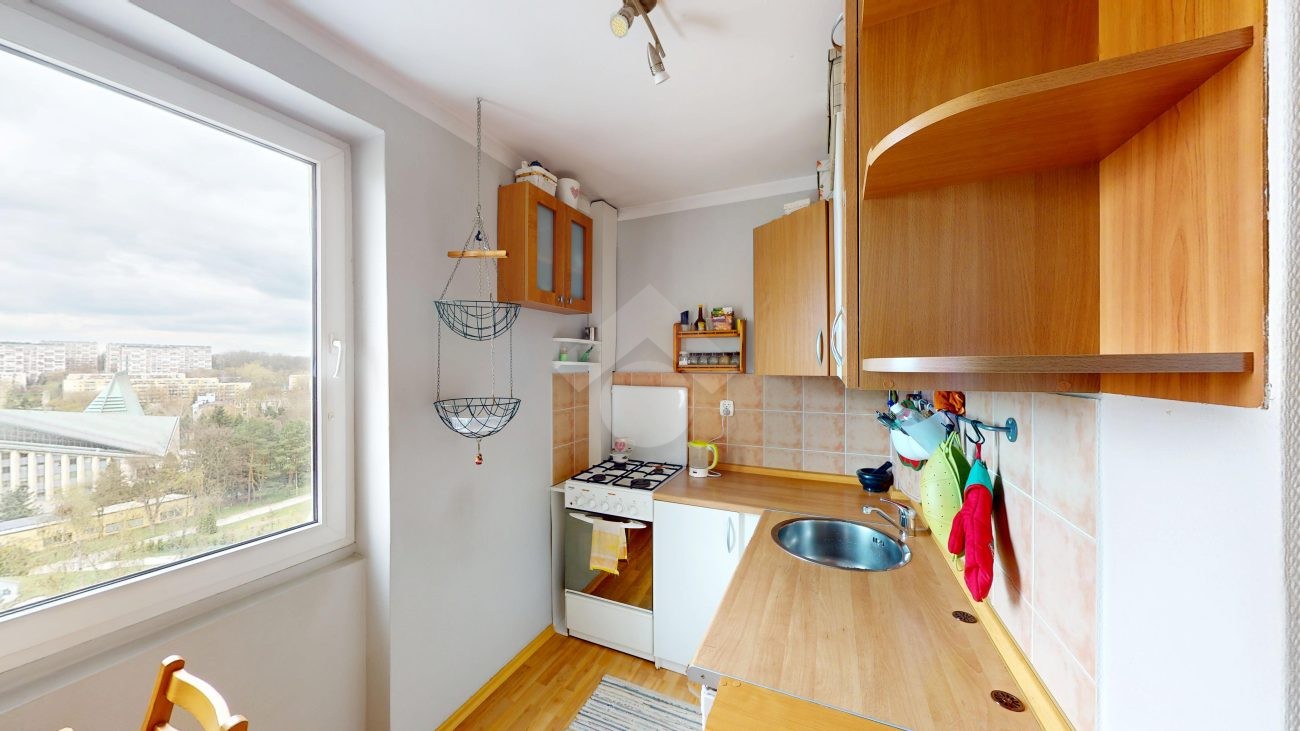 Oferujemy Państwu widokową kawalerkę usytuowaną na ósmym piętrze dziesięciopiętrowego bloku na osiedlu Tysiąclecia.