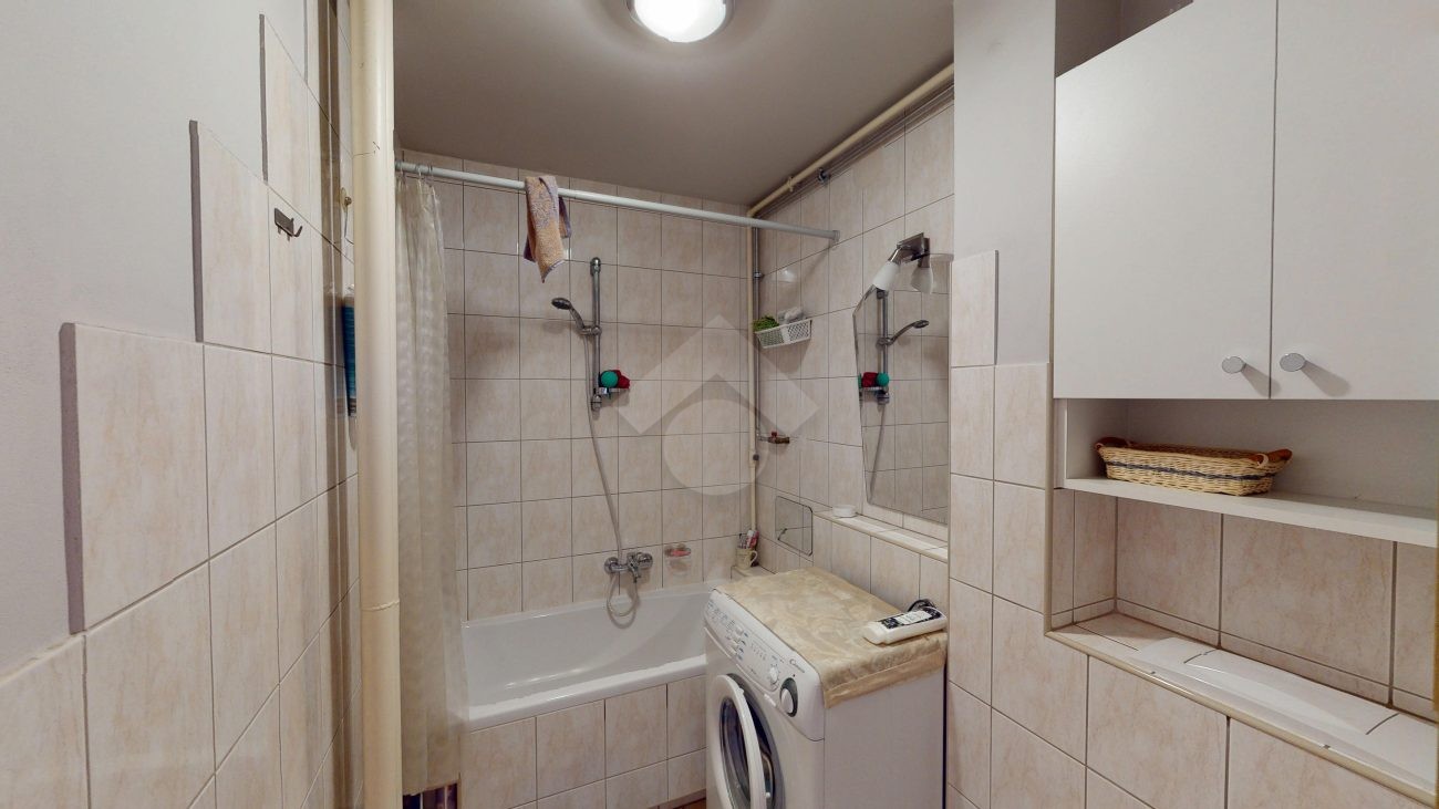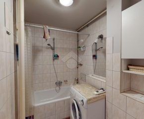 Łazienka wyposażona jest w wannę oraz pralkę.