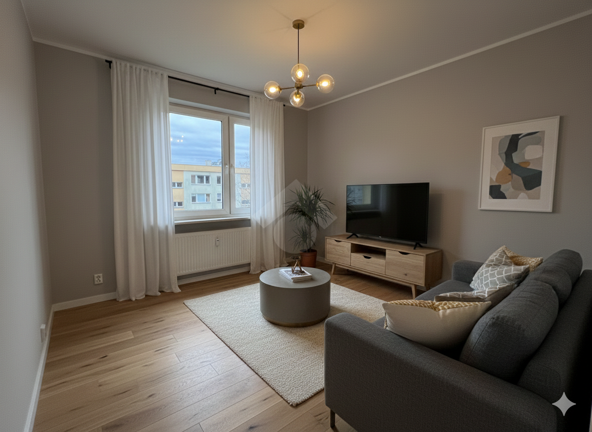 Mieszkanie jest do remontu, co daje nowemu właścicielowi duże możliwości aranżacyjne układ oparty na ścianach działowych pozwala na swobodną zmianę funkcji pomieszczeń i dostosowanie wnętrza do własnych potrzeb. Lokal posiada instalacje elektryczne – miedziane, a dwustronna ekspozycja zapewnia doskonałe doświetlenie wnętrz przez cały dzień.