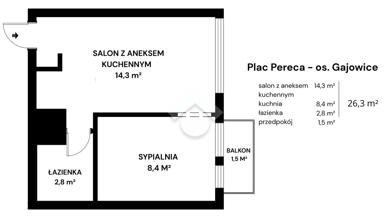 Do mieszkania przynależy balkon o powierzchni ok. 2 m².