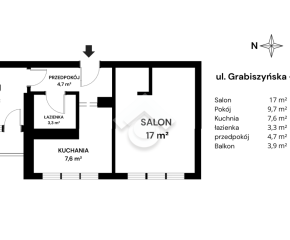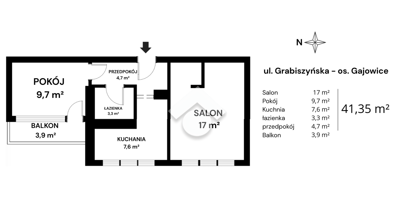 ZIELONA OKOLICA / 2 POKOJE / 41,34 m² / BALKON / ODDZIELNA KUCHNIA / OGRZEWANIE MIEJSKIE / UL. GRABISZYŃSKA – GAJOWICE