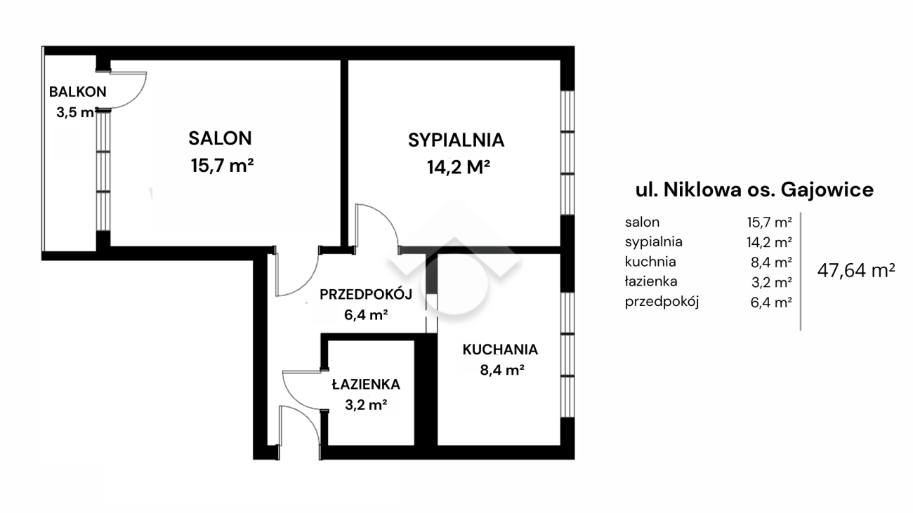2 POKOJE / 47,64 m² / BALKON / PIWNICA / OGRZEWANIE MIEJSKIE / UL. NIKLOWA – WROCŁAW