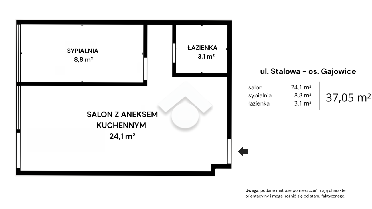 Uwaga: podane metraże pomieszczeń mają charakter orientacyjny i mogą nieznacznie różnić się od stanu faktycznego.