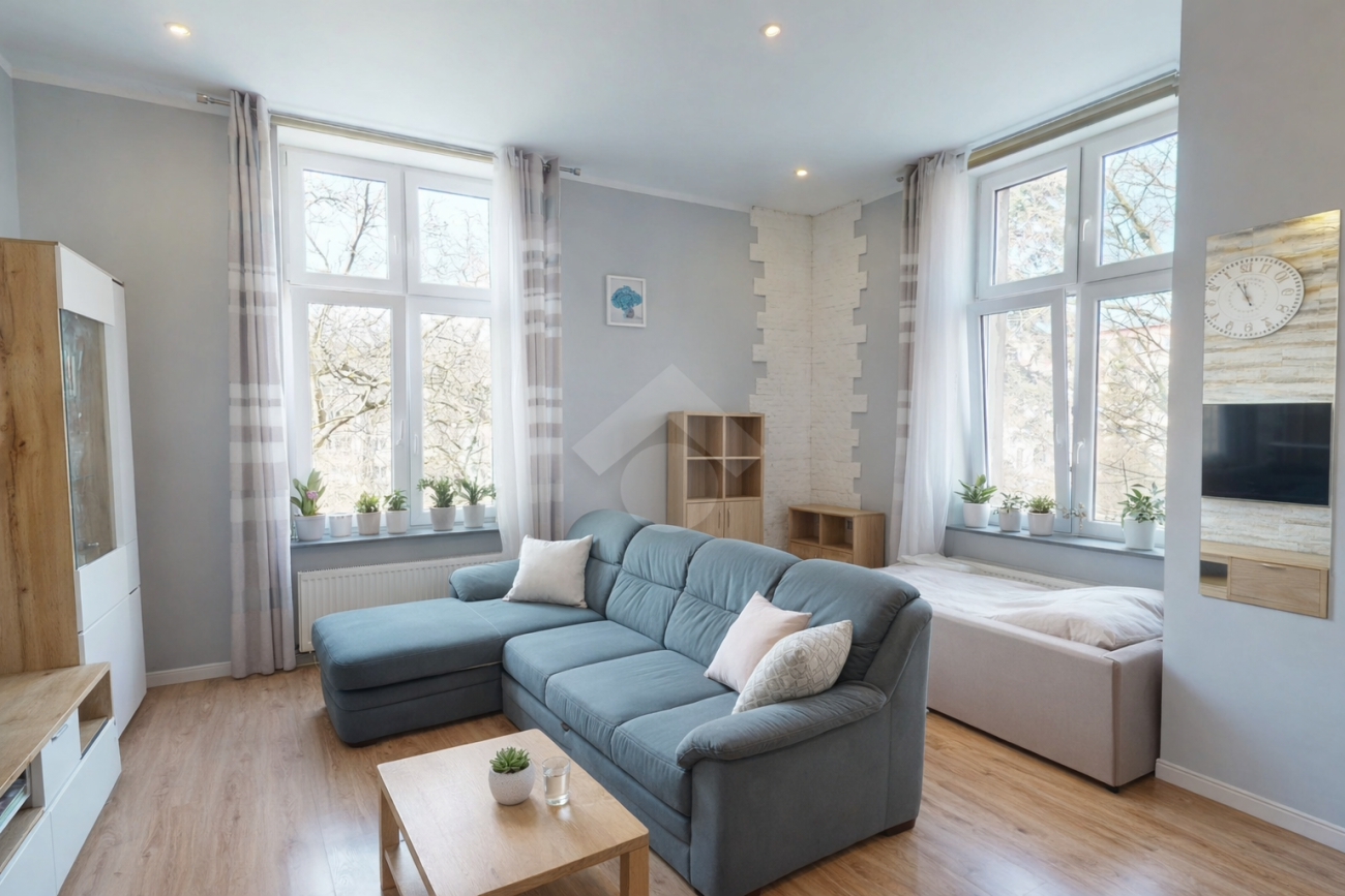 Na sprzedaż przestronne, 4-pokojowe mieszkanie o powierzchni 95,39 m², położone na 1. piętrze w kameralnej, 2-piętrowej kamienicy z 1907 roku przy ul. Wolbromskiej we Wrocławiu.