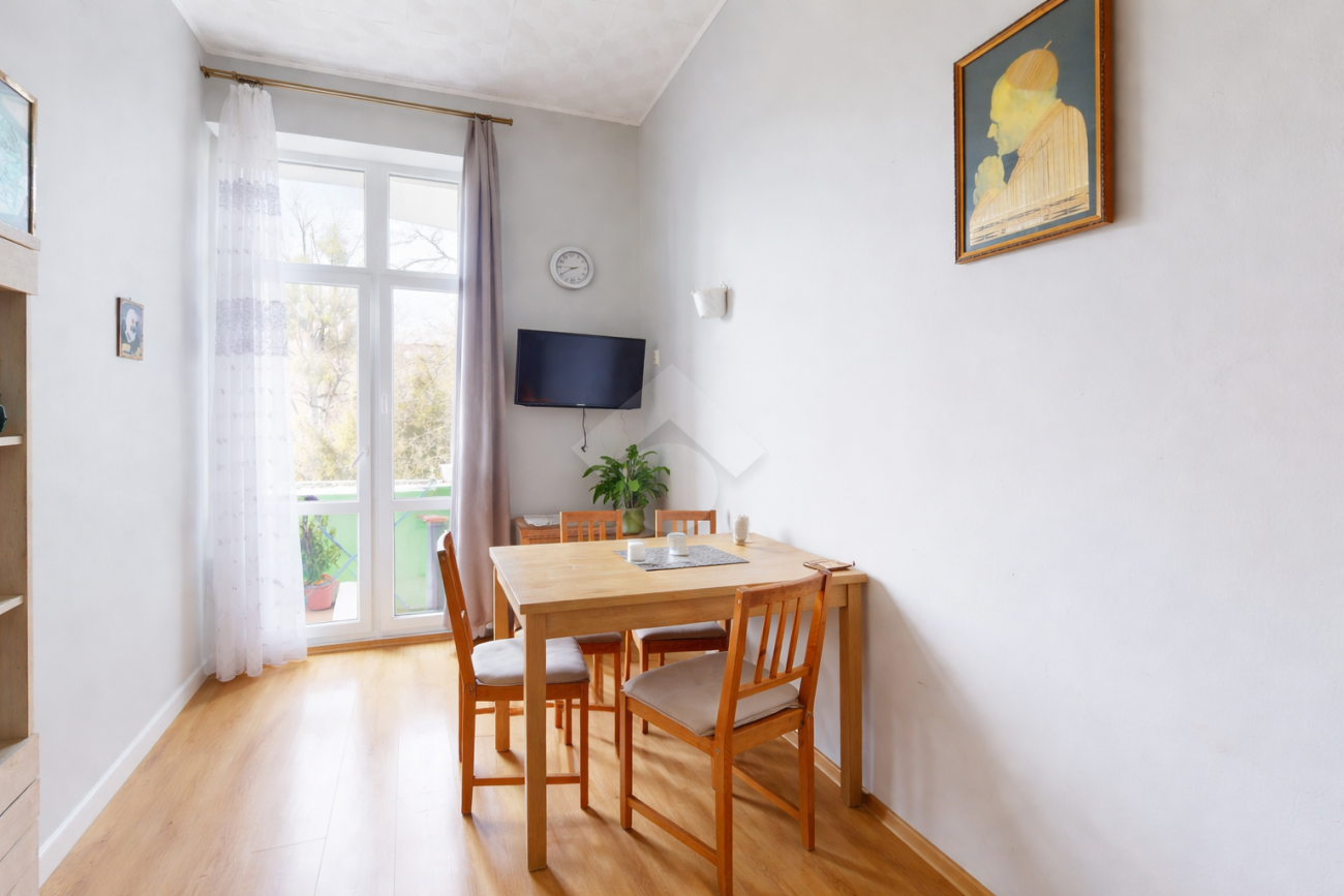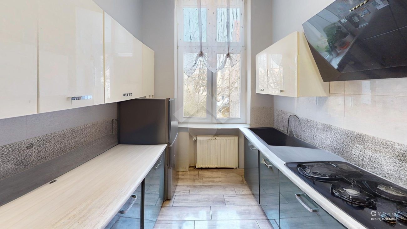 Nieruchomość znajduje się w zadbanej, klimatycznej kamienicy z własnym podwórkiem, w bardzo cichej i spokojnej okolicy. Wysokie, 3-metrowe sufity oraz duże okna zapewniają poczucie przestrzeni.