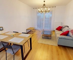Mieszkanie w pełni wyposażone w sprzęt AGD: lodówka, płyta, piekarnik, zmywarka, mikrofalówka, pralka.